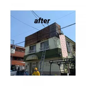 とりあえず落下の危険がないように重量物(タイル)の撤去をお客様と警察官の方から依頼されました。