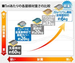 屋根の材質によって重さは全然違います!葺き替えて屋根が軽くなる場合は負担が減るのでいいんですが、重くなってしまうと地震で倒壊してしまったり、潰れたりしてしまう可能性があります!