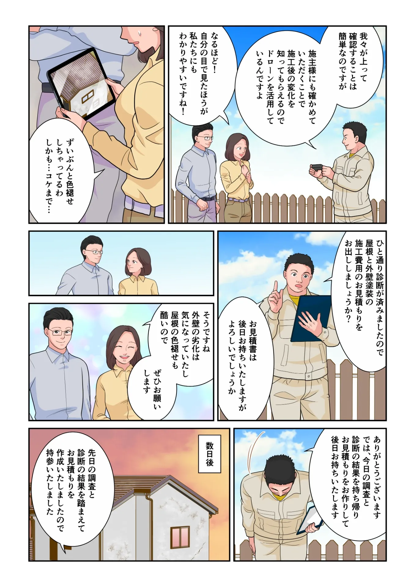 めぐみ「そうですね。外壁の劣化は気になっていたし、屋根の色褪せも酷いのでぜひお願いします」