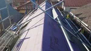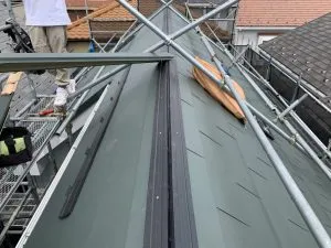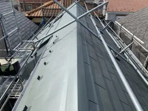 S様邸 屋根カバー工法及び破風板金工事 2021/04/24 工事物件住所:相模原市中央区淵野辺本町 工事内容詳細:カバー工法、破風板金、バルコニー防水工事 予算:145万円(税抜) 使用材料 屋根本体:ヒランビー極MAX ・洗浄工事 ・洗浄前後 ・ルーフィング施工 ・樹脂貫板施工 ・屋根完成 ・破風板金施工 屋根工事 その他の工事