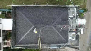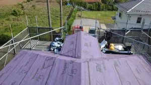 M様邸 屋根カバー工法 2021/06/03 工事物件住所:相模原市緑区中野 工事内容詳細:屋根カバー工法 予算:110万円 工期:5日 使用材料:リッジウェイ ・屋根施工前 ・ルーフィング施工 ・屋根施工後 ・屋根空撮 屋根工事