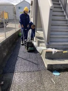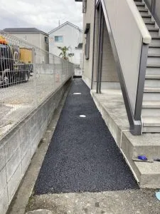 ガーデンハイツ内出 舗装工事 2022/03/21 工事物件住所:相模原市緑区下九沢 工事内容詳細:外周部舗装工事 予算:70万円(税抜) 工期:3日 ・施工前後比較 ・既存舗装撤去 ・路盤調整 ・舗装工事 店舗工事 その他の工事