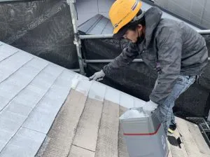 ・屋根中塗り施工