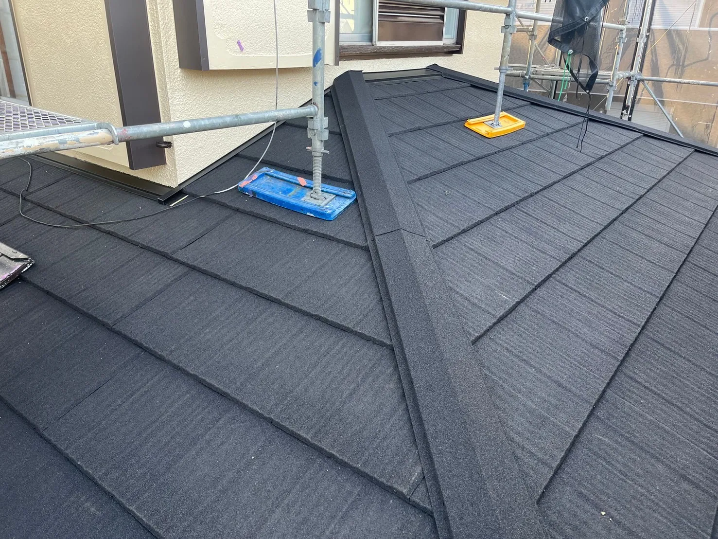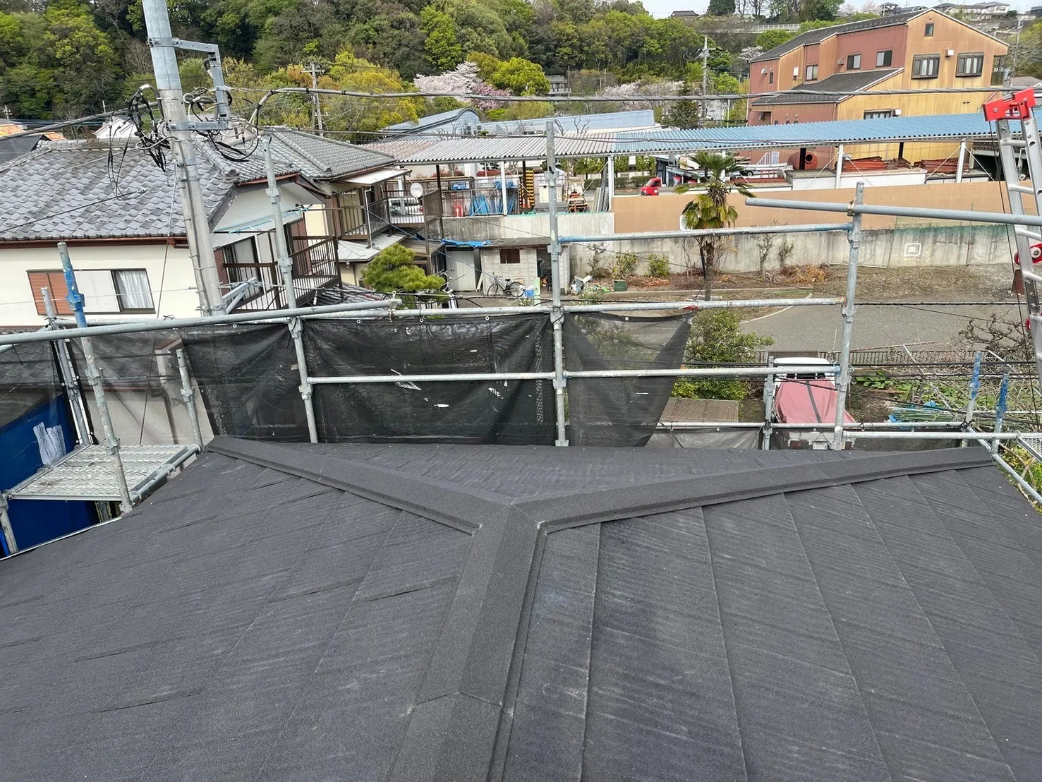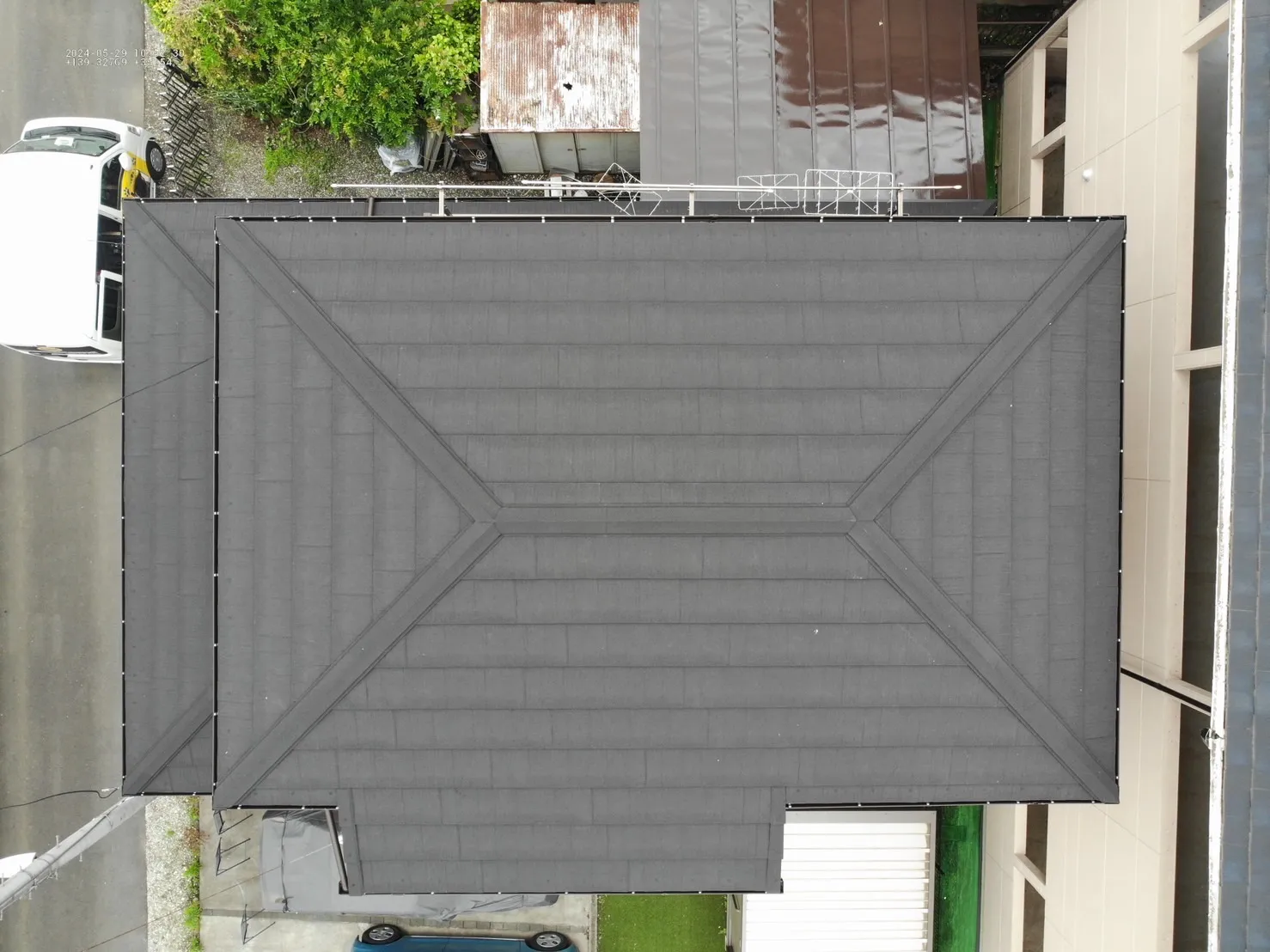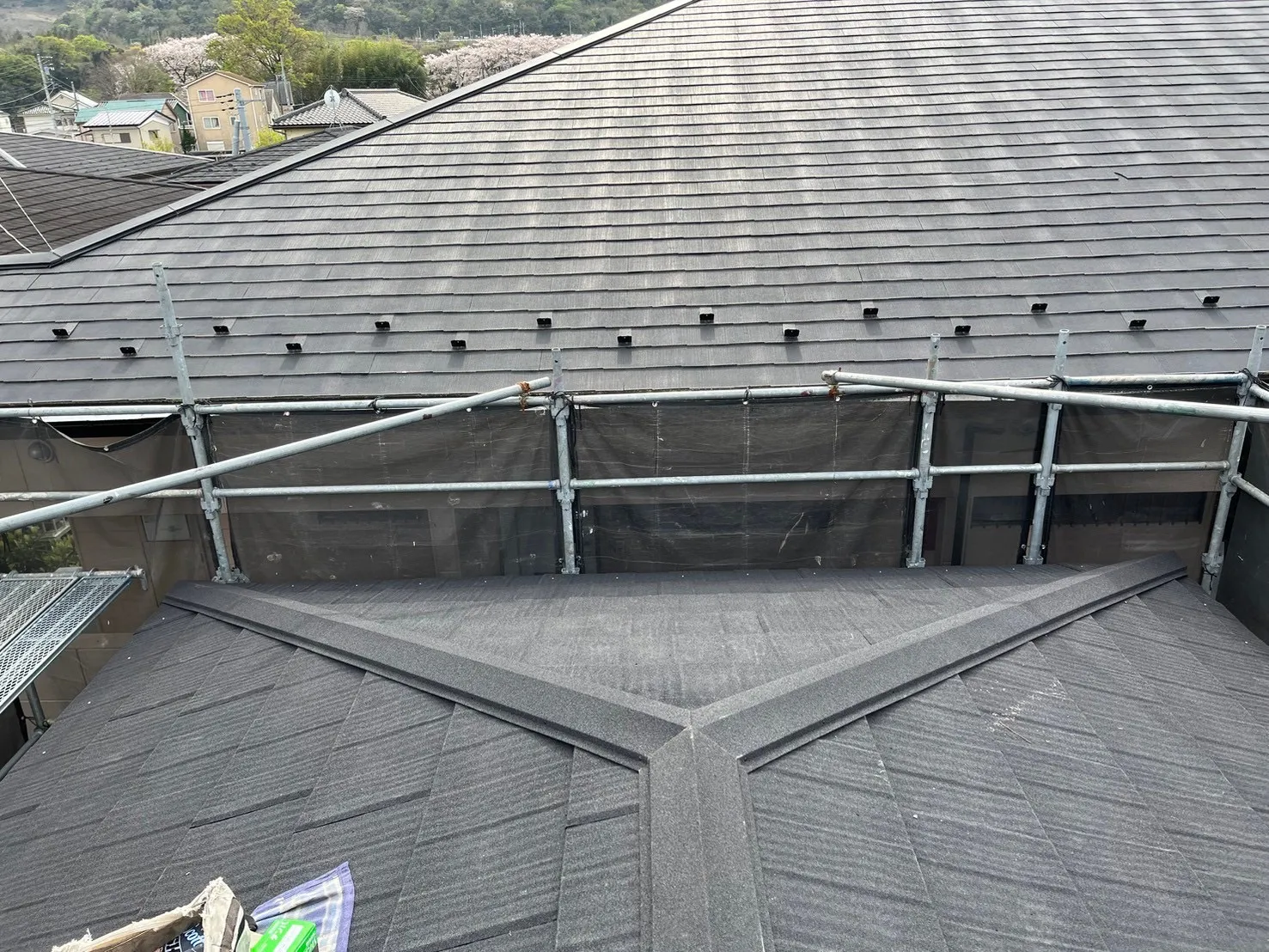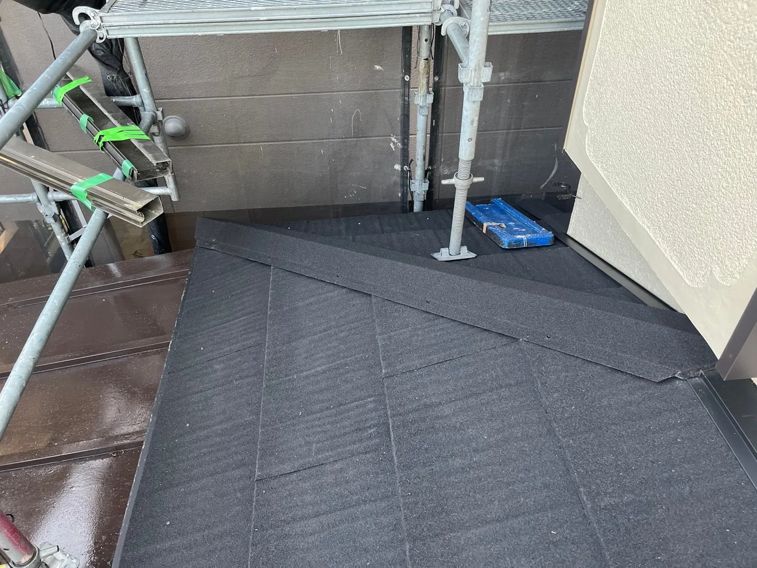 相模原市中央区水郷田名 F様邸屋根カバー工事 2024/05/26 工事物件住所:相模原市中央区水郷田名 工事内容詳細:屋根カバー工事 予算:120万円(税抜) 【使用材料】 屋根:ディーズルーフィング・エコグラーニ 施工前後比較写真 施工前 施工後 施工前後比較写真 施工前 施工後 ルーフィング施工 屋根工事