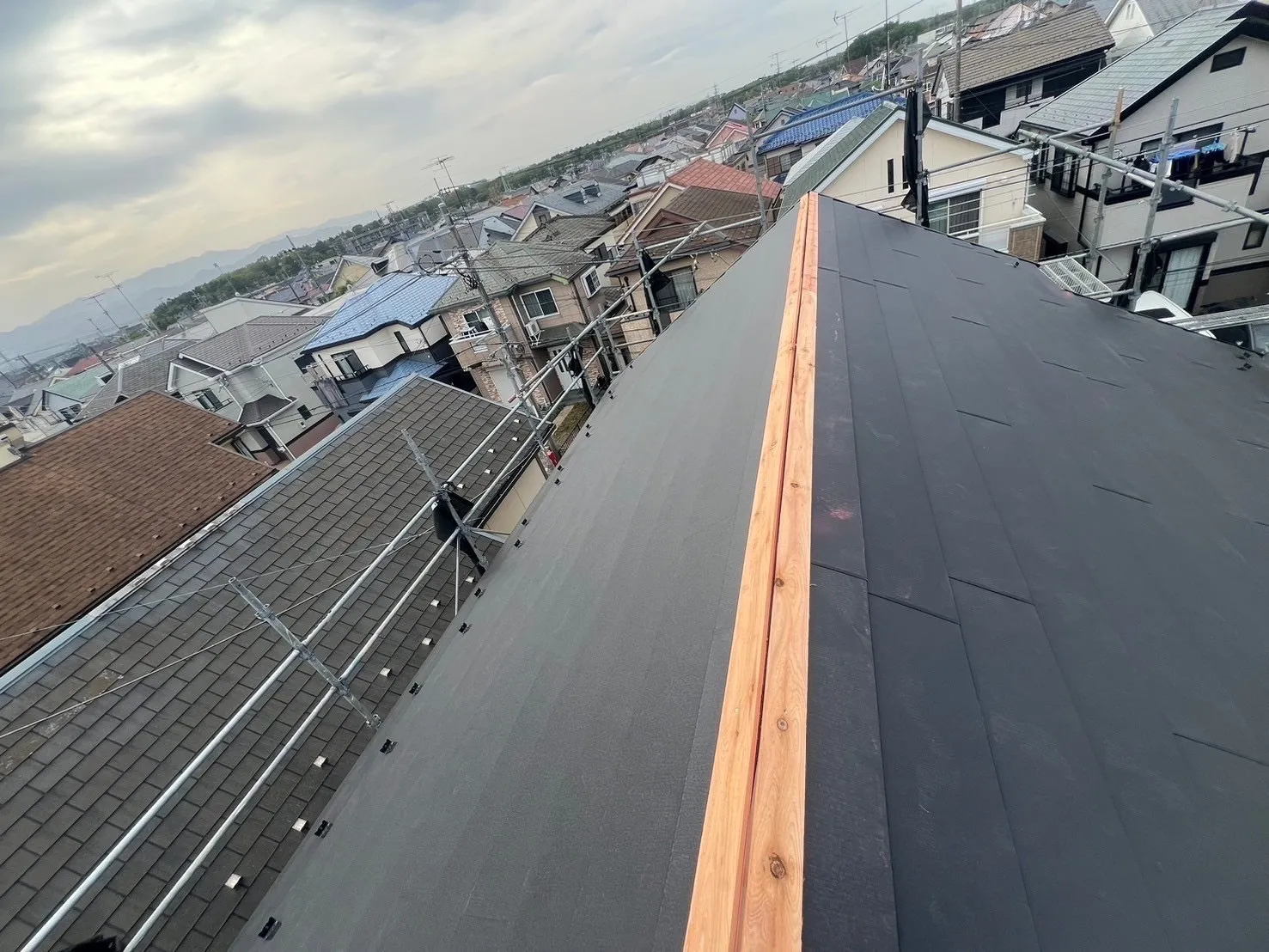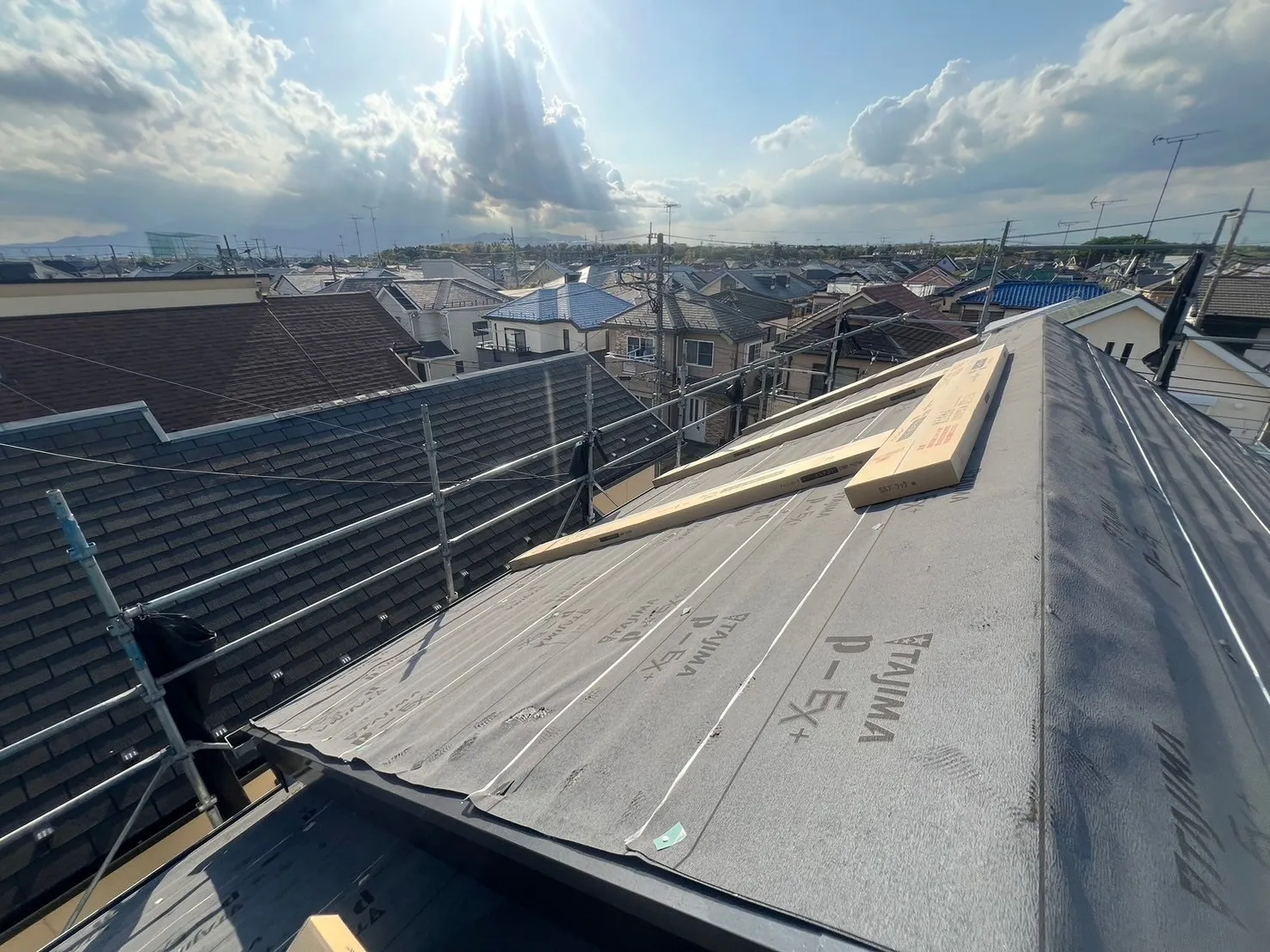 相模原市南区東大沼 Y様邸 屋根カバー工事 2024/05/26 工事物件住所:相模原市南区東大沼 工事内容詳細:屋根カバー工事 予算:110万円(税抜) 【使用材料】 屋根:アイジー工業・スーパーガルテクト 施工前後比較写真 ルーフィング施工 屋根工事施工 屋根工事