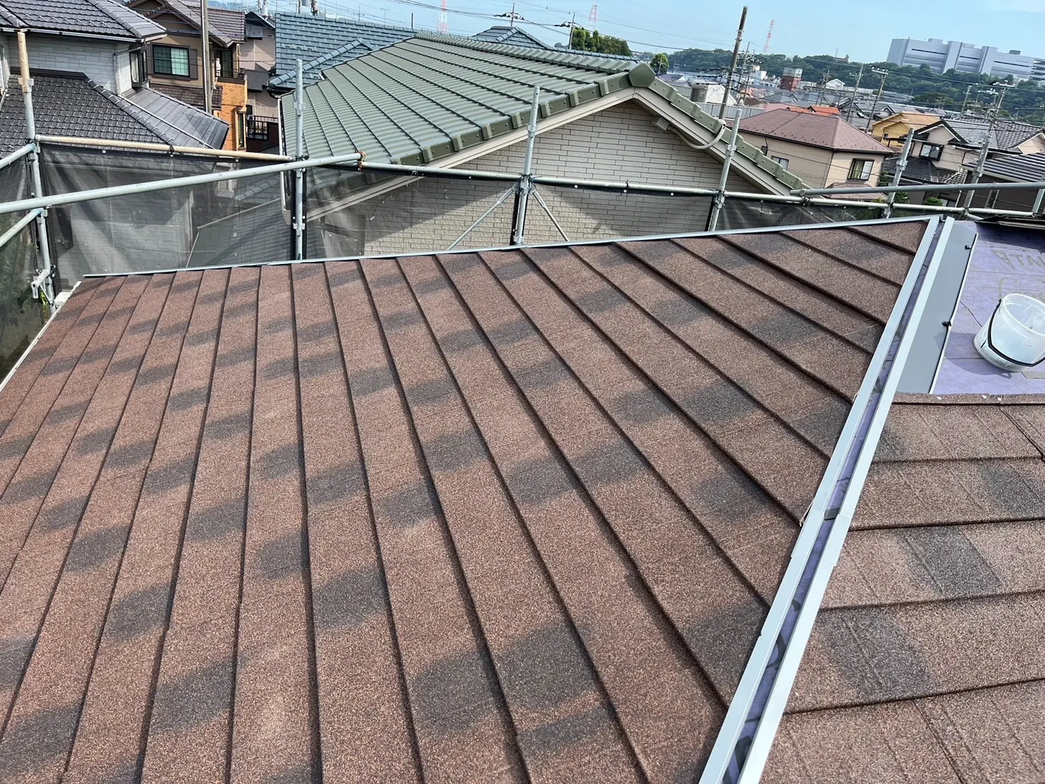 相模原市中央区田名塩田 T様邸 屋根カバー外壁付帯部塗装工事 2024/08/23 工事物件住所:相模原市中央区田名塩田 工事内容詳細:屋根カバー外壁付帯部塗装工事 予算:210万(税抜) 【使用材料】 屋根:オークリッジスーパー 外壁:超低汚染リファイン1000MF-IR 施工前後比較写真 施工前全景写真 施工後全景写真 屋根施工前 屋根施工後 屋根防水シート施工 屋根カバー施工 外壁下塗り施工 外壁中塗り施工 外壁上塗り施工 高圧洗浄施工 養生施工 コーキング撤去 コーキング施工 付帯部塗装 鉄部ケレン作業