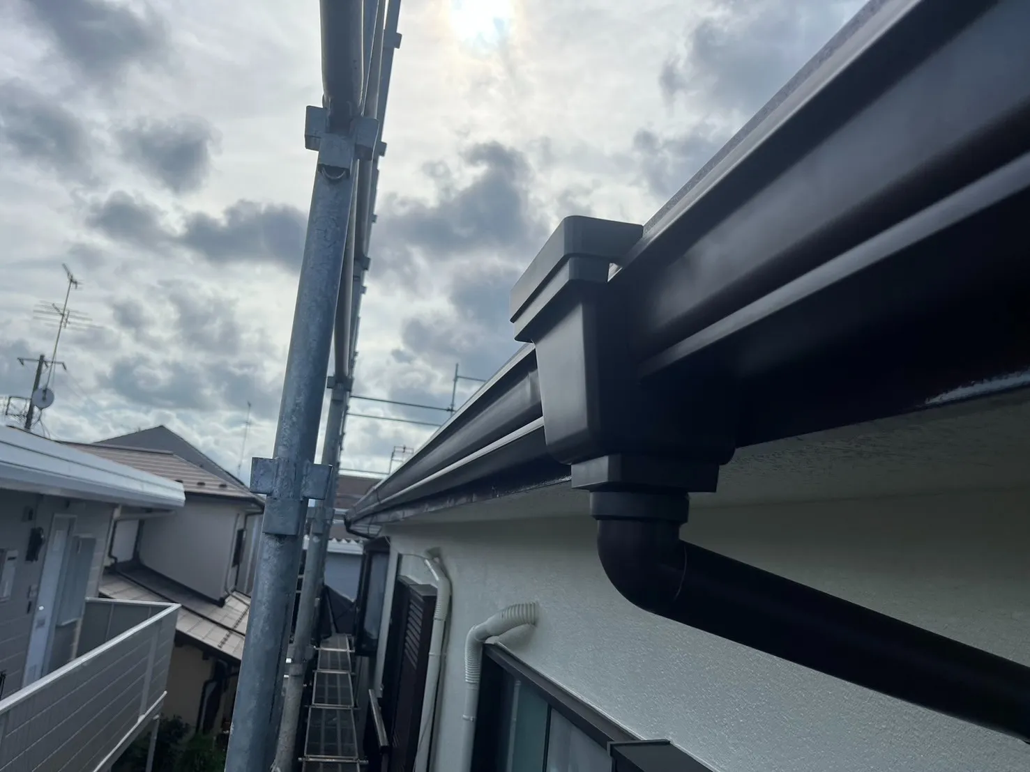 相模原市南区相南 K 様邸 屋根改修・外壁塗装・雨樋交換工事 2024/09/11 工事物件住所:相模原市南区相南 工事内容詳細:屋根改修・外壁塗装・雨樋交換工事 【使用材料】 屋根:スーパーガルテクト 外壁:シリコンREVO1000-IR 施工前後比較写真 施工前 施工後 屋根施工前後比較写真 施工前 施工後 高圧洗浄施工写真 コーキング施工 外壁下塗り 外壁中塗り 外壁上塗り 屋根高圧洗浄 屋根防水シート施工 屋根カバー施工 雨樋交換施工 ケレン作業 付帯部塗装