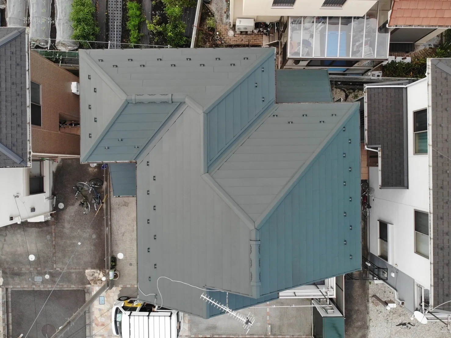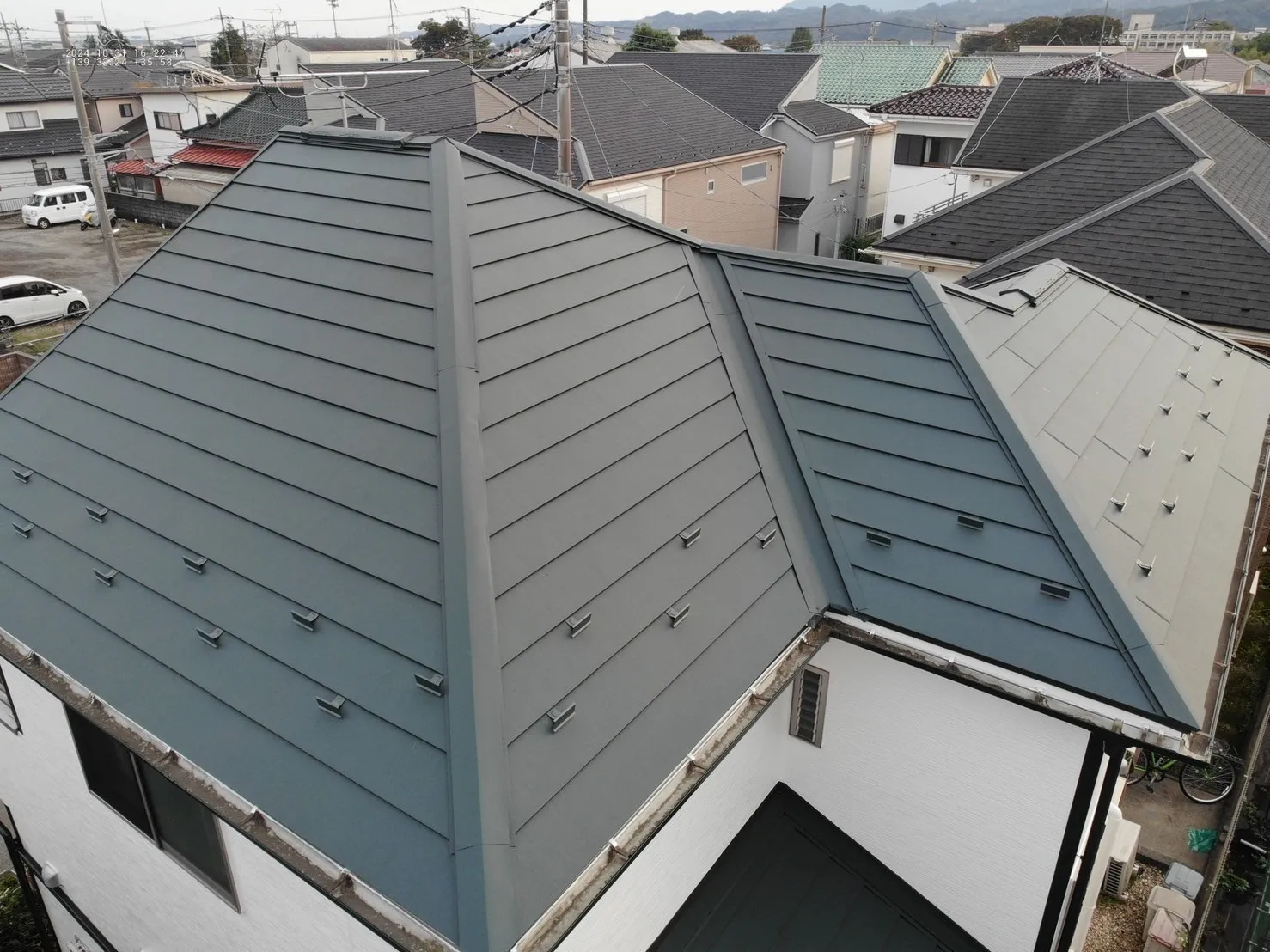 相模原市緑区下九沢 Z様邸 屋根葺き替え・外壁塗装工事 2024/11/05 工事物件住所:相模原市緑区下九沢 工事内容詳細:屋根葺き替え・外壁塗装工事 予算:204万円(税抜き) 【使用材料】 屋根:スーパーガルテクト 外壁:超低汚染リファイン1000MF-IR 施工前後比較写真 施工前 施工後 屋根施工前後比較写真 施工前 施工後 高圧洗浄施工 養生施工 コーキング撤去 コーキング打設 外壁下塗り 外壁中塗り 外壁上塗り 破風板塗装施工 屋根防水シート施工 屋根カバー施工 屋根施工後空撮 本体 下屋根 付帯部塗装施工 屋根工事 塗装工事