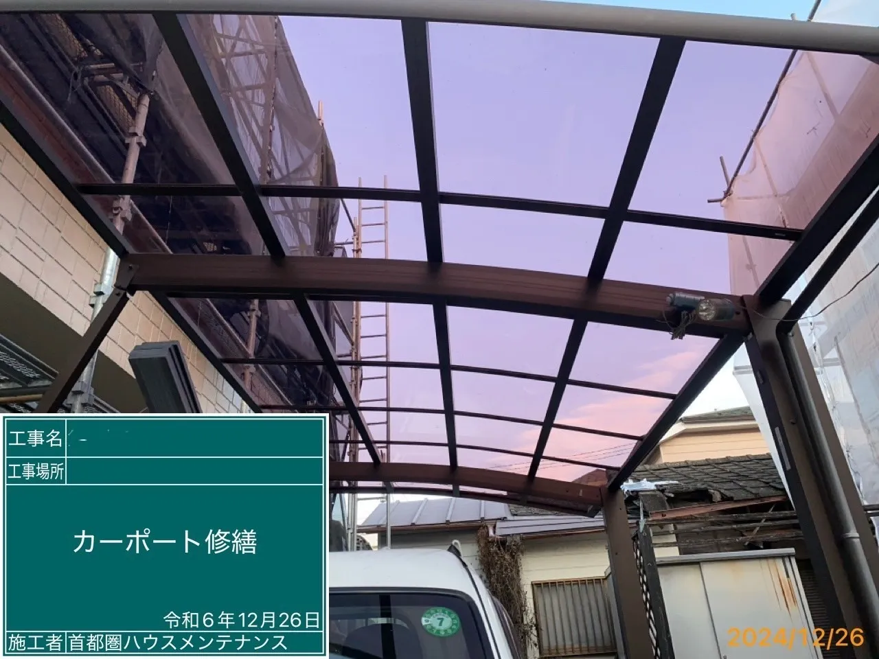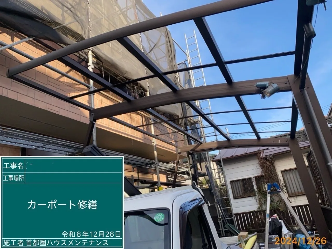 八王子市初沢町 S 様邸 屋根カバー・外壁塗装・雨樋交換・カーポート修繕工事 2025/01/15 工事物件住所:八王子市初沢町 工事内容詳細:屋根カバー・外壁塗装・雨樋交換・カーポート修繕工事 【使用材料】 屋根:ディプロマットスター 外壁:超低汚染リファイン1000MF-IR 施工前後比較写真 施工前 施工後 屋根施工前後比較写真 施工前 施工後 高圧洗浄作業 コーキング施工 外壁下塗り 外壁中塗り 外壁上塗り 屋根カバー工事 雨樋交換工事 ベランダ防水工事 カーポート修繕工事