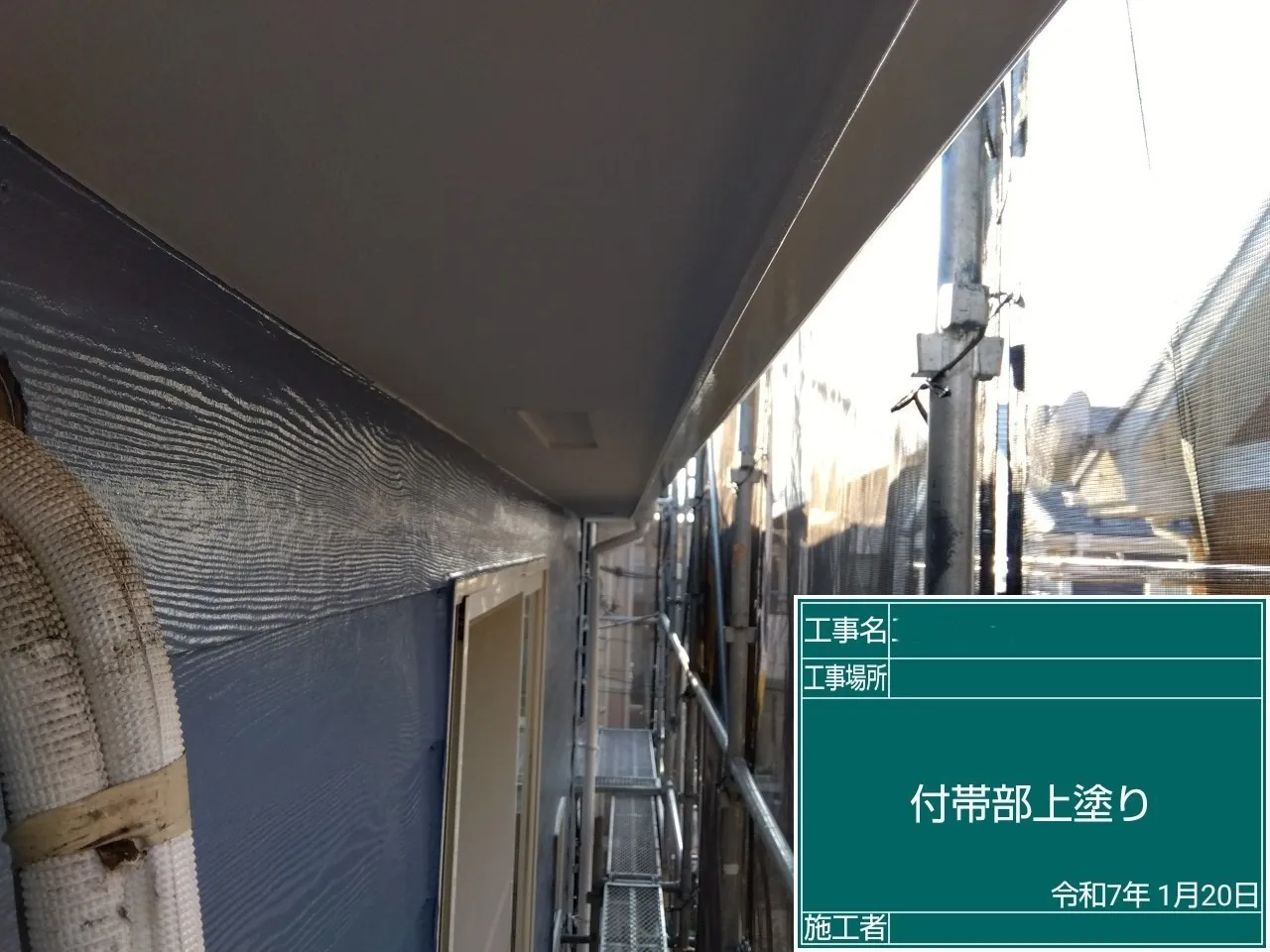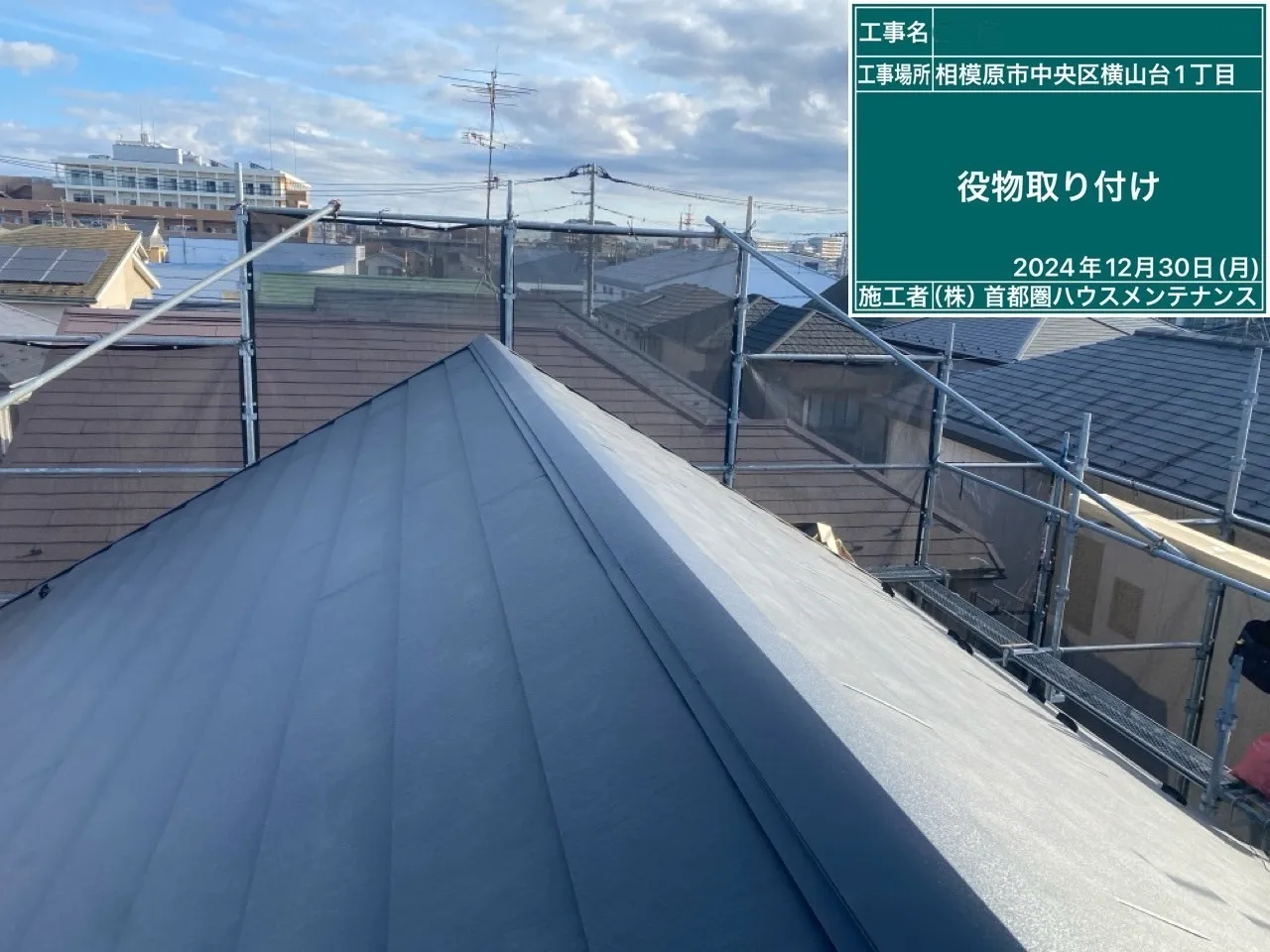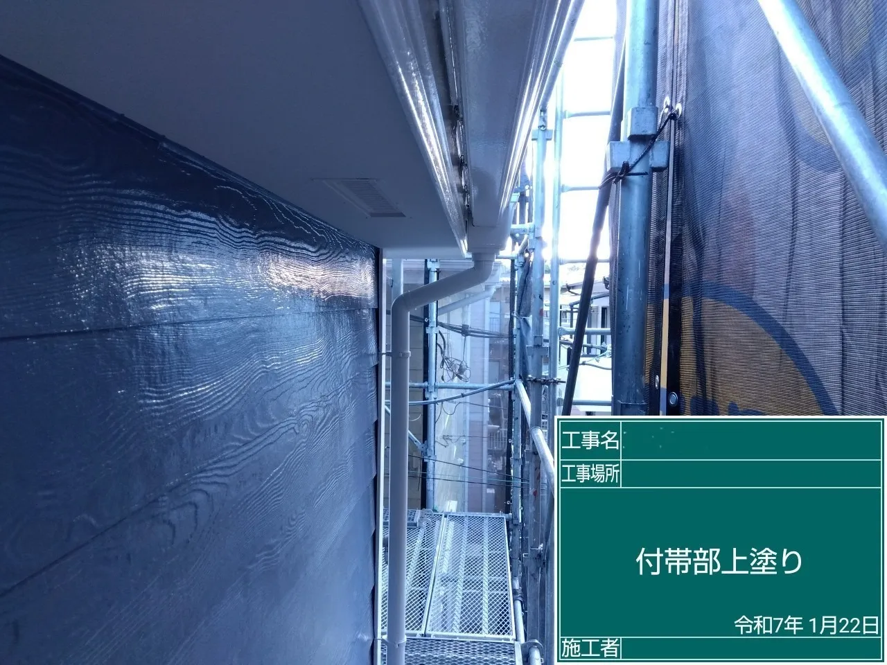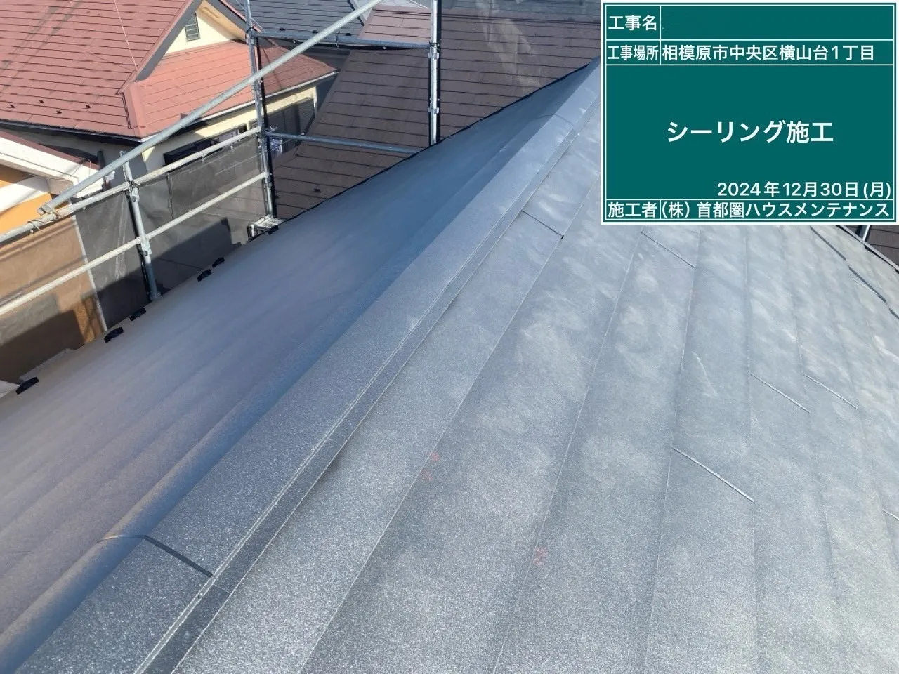 相模原市中央区横山台 M 様邸 屋根カバー・外壁塗装工事 2025/01/30 工事物件住所:相模原市中央区横山台 工事内容詳細:屋根カバー・外壁塗装工事 【使用材料】 屋根:横暖ルーフαS(CブラックS) 外壁:フッ素REVO1000-IR(遮熱) (8215:スレートブルー) 施工前後比較写真 施工後 施工前 養生作業 外壁下塗り 外壁中塗り 外壁上塗り 屋根カバー工事 付帯部塗装