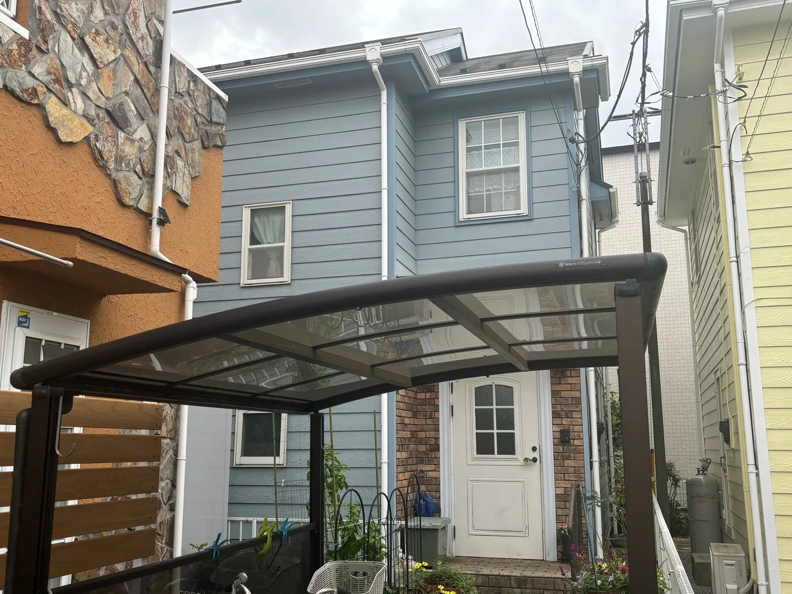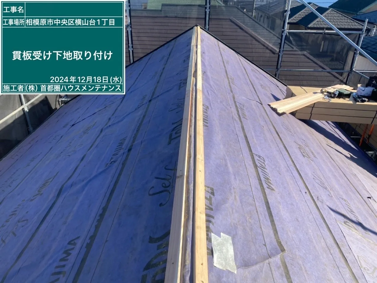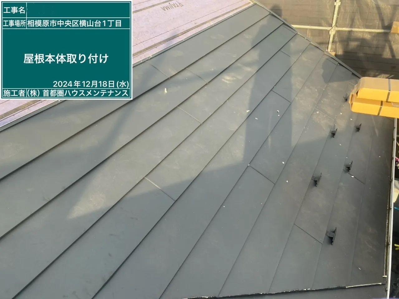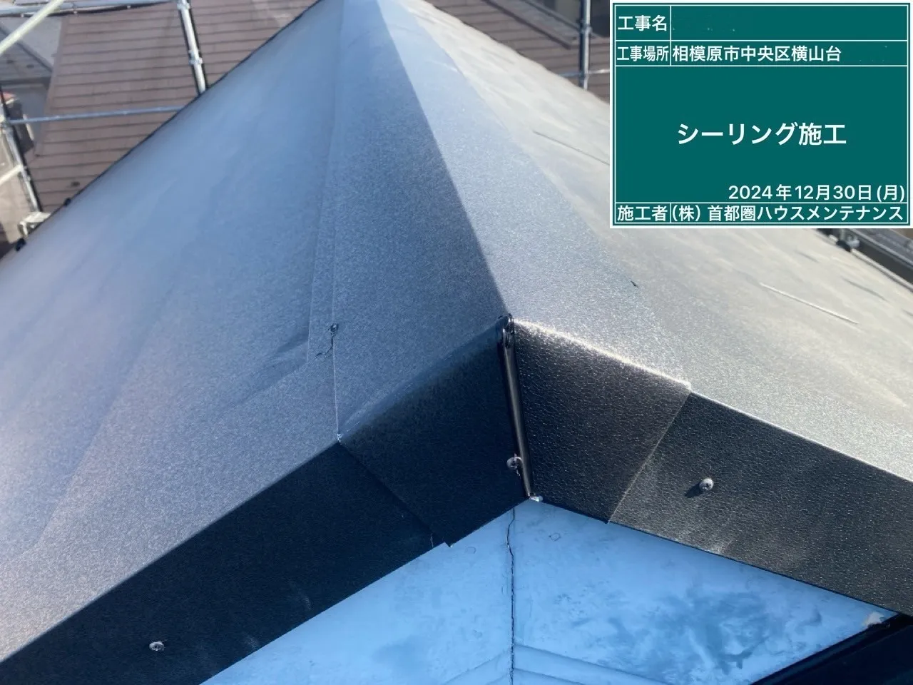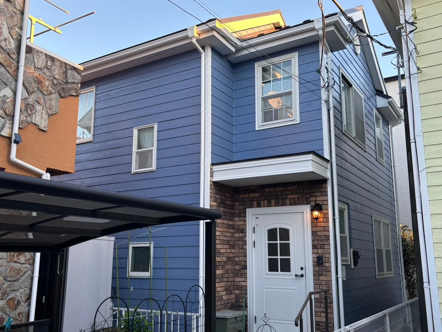 相模原市中央区横山台 M 様邸 屋根カバー・外壁塗装工事 2025/01/30 工事物件住所:相模原市中央区横山台 工事内容詳細:屋根カバー・外壁塗装工事 【使用材料】 屋根:横暖ルーフαS(CブラックS) 外壁:フッ素REVO1000-IR(遮熱) (8215:スレートブルー) 施工前後比較写真 施工後 施工前 養生作業 外壁下塗り 外壁中塗り 外壁上塗り 屋根カバー工事 付帯部塗装