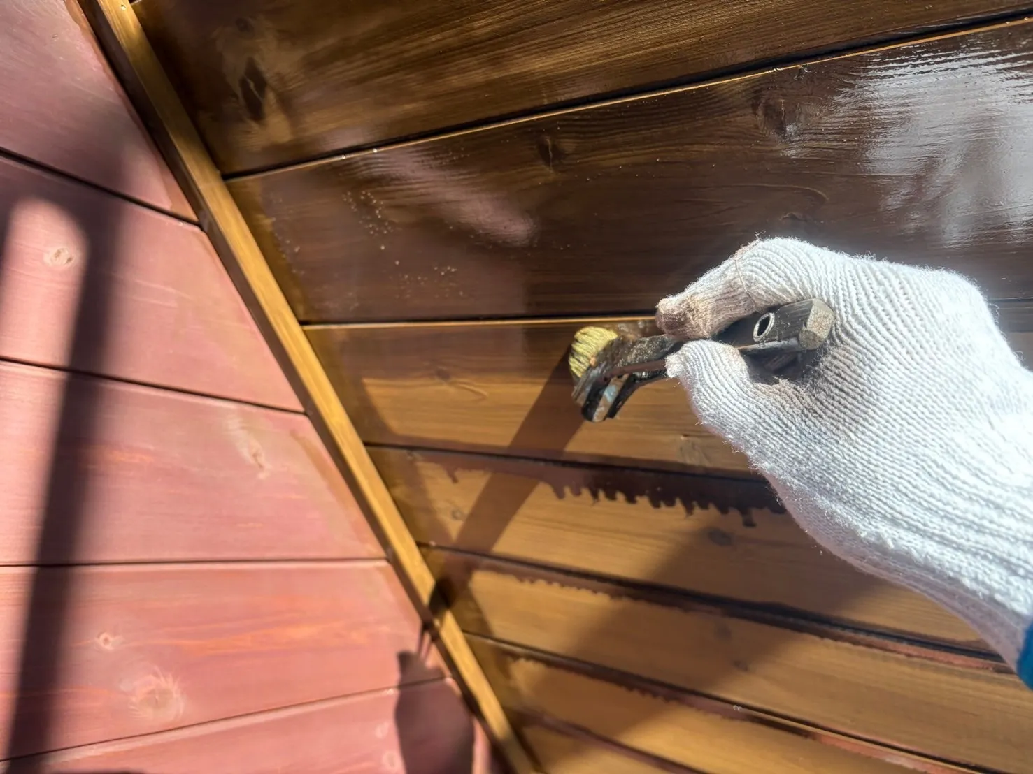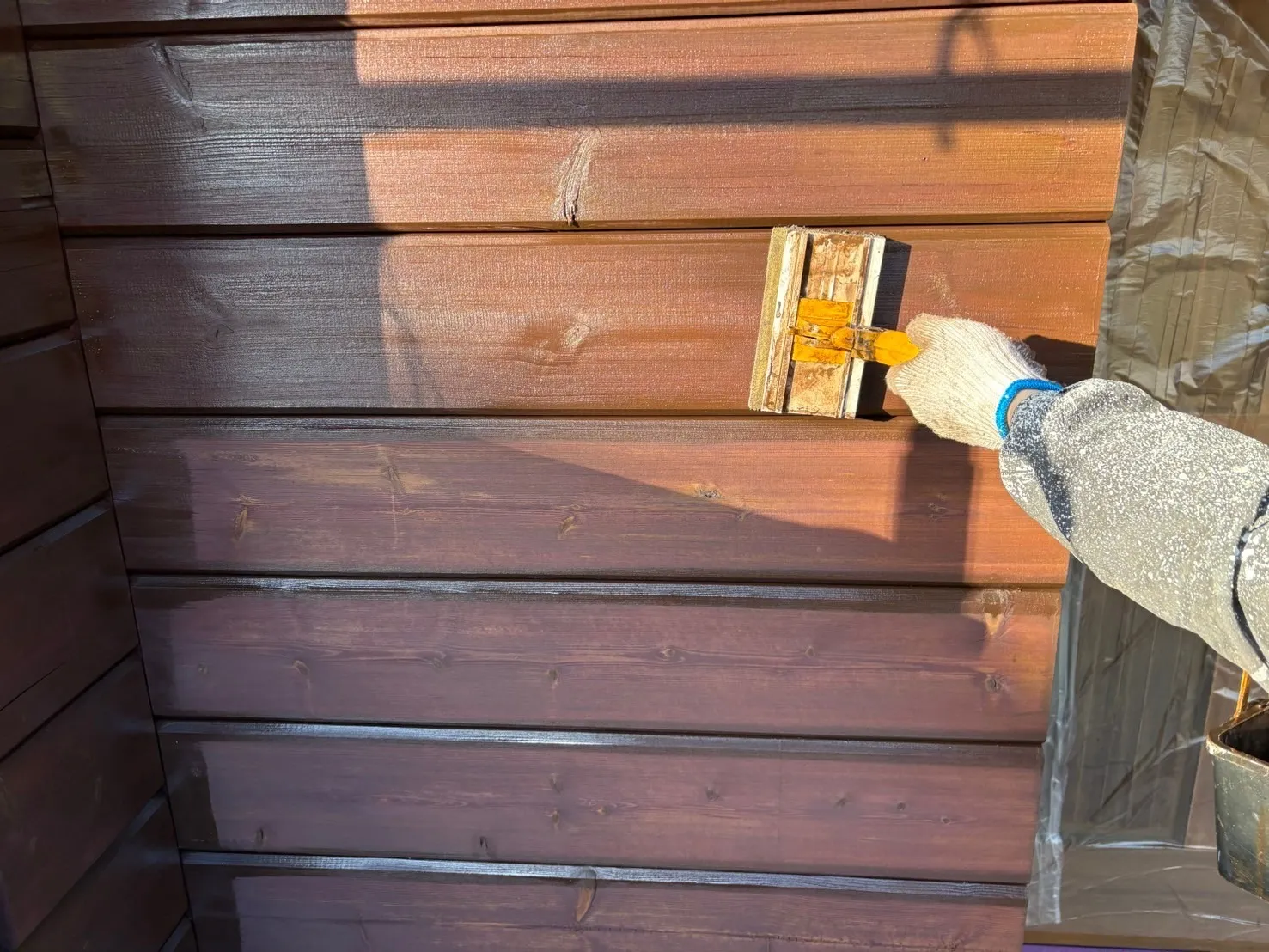 八王子市美山町 Y 様邸 外壁及び付帯部塗装工事 2025/03/05 工事物件住所:八王子市美山町 工事内容詳細:外壁及び付帯部塗装工事 予算:129万円(税抜き) 【使用材料】 キシラデコール 施工前後比較写真 施工後 施工前 高圧洗浄 養生作業 ケレン作業 外壁オイルステイン1回目 外壁オイルステイン2回目 デッキオイルステイン1回目 デッキオイルステイン2回目 付帯部塗装