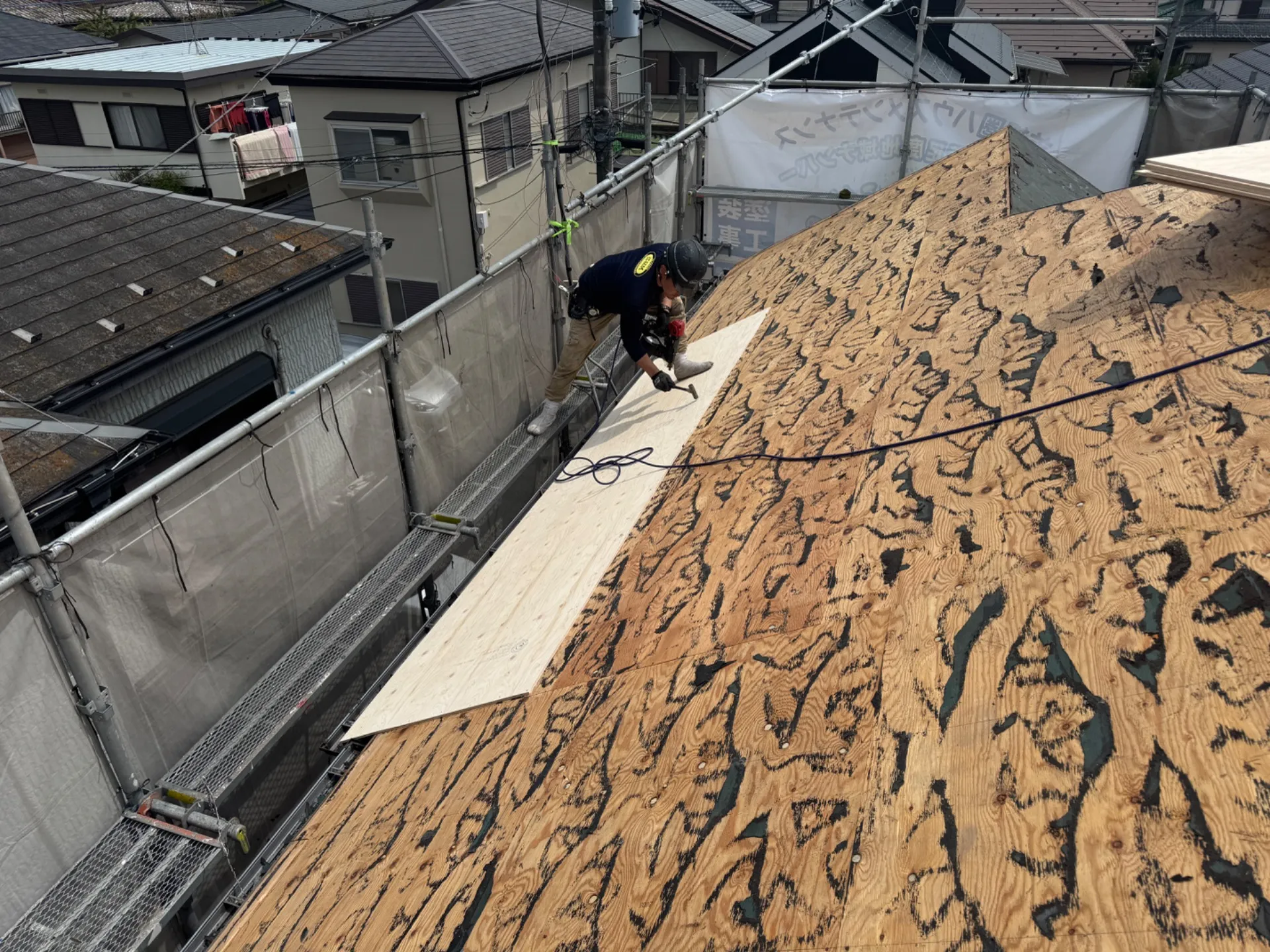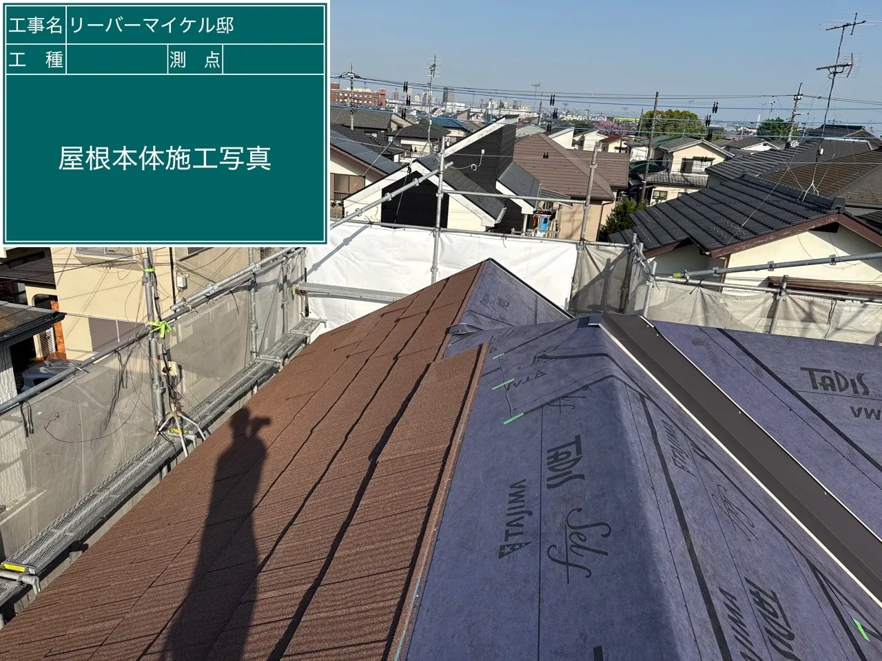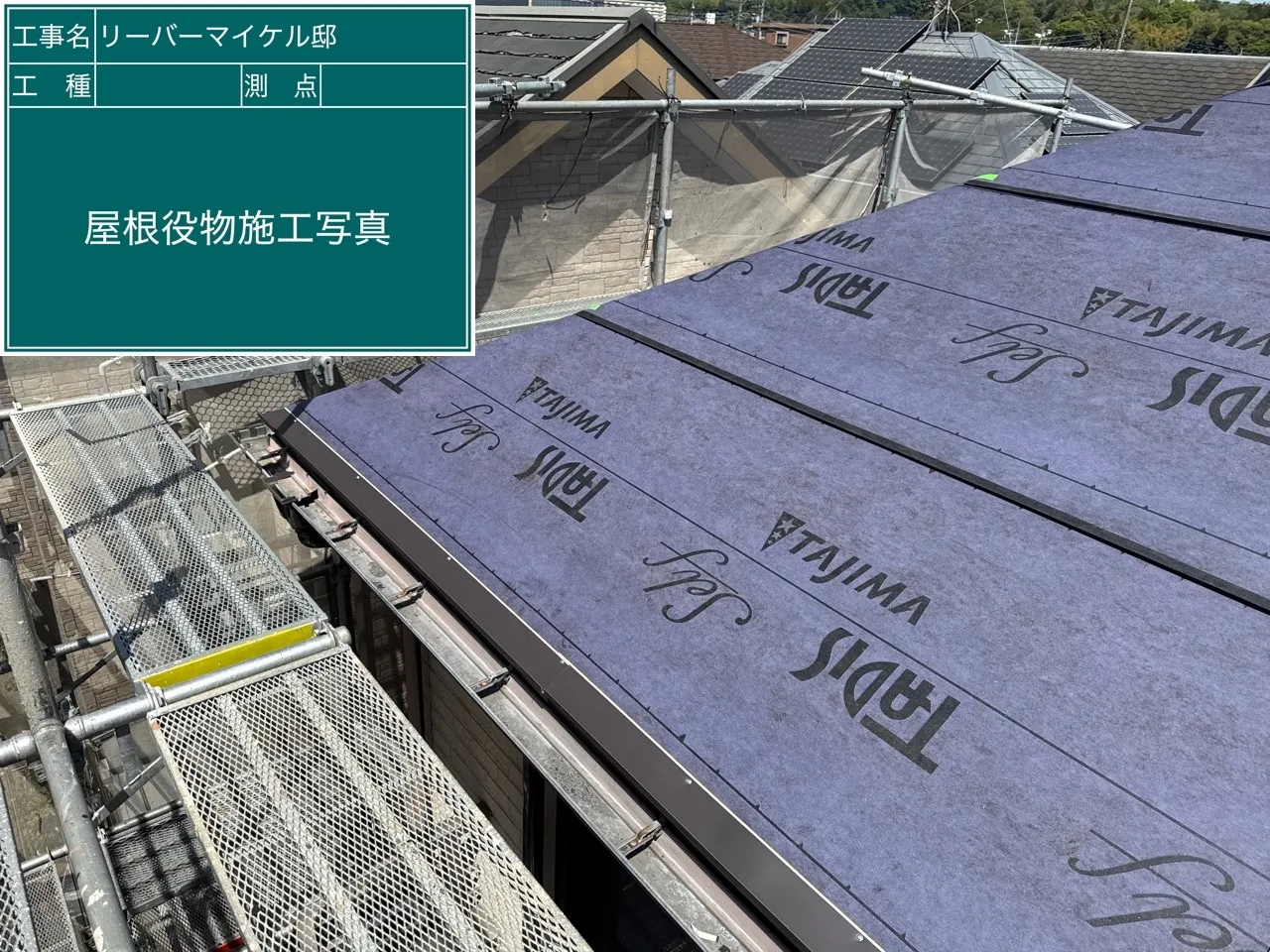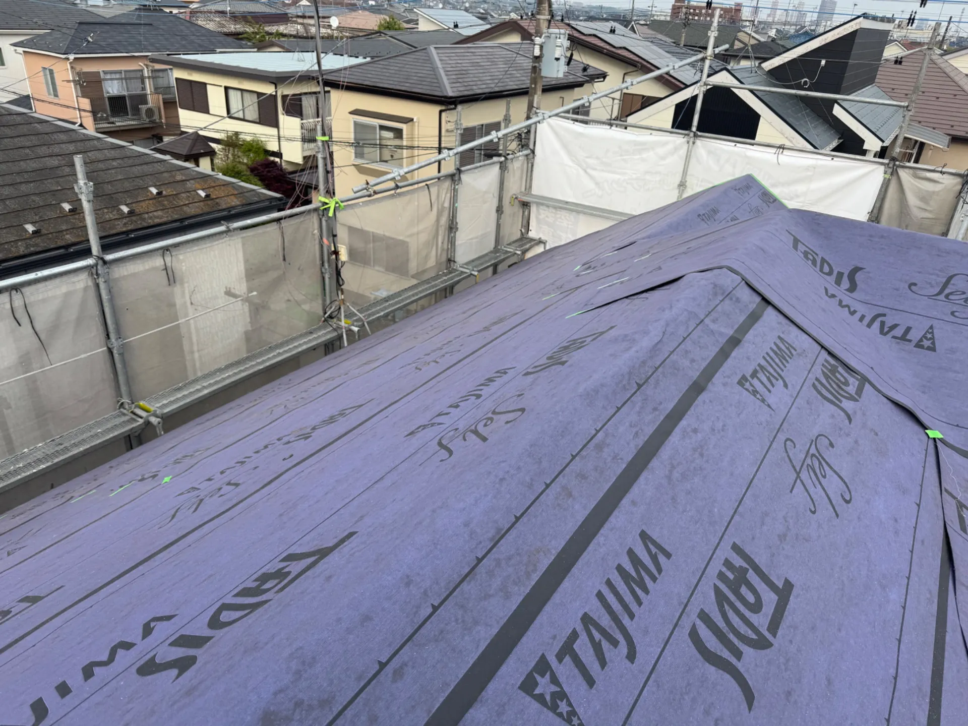 R様邸屋根葺き替え工事 2025/05/02 屋根カバー工事 工事物件住所:相模原市緑区町屋 工事内容詳細:屋根葺き替え工事工事 予算:120万円(税抜) 【使用材料】 屋根:エコグラーニ・ディーズルーフィング 施工後写真 足場架設 既存屋根撤去(ニチハ・パミール) 既存ルーフィング撤去 野地重ね張り 新規ルーフィング施工 屋根役物施工 屋根本体施工 屋根完成写真