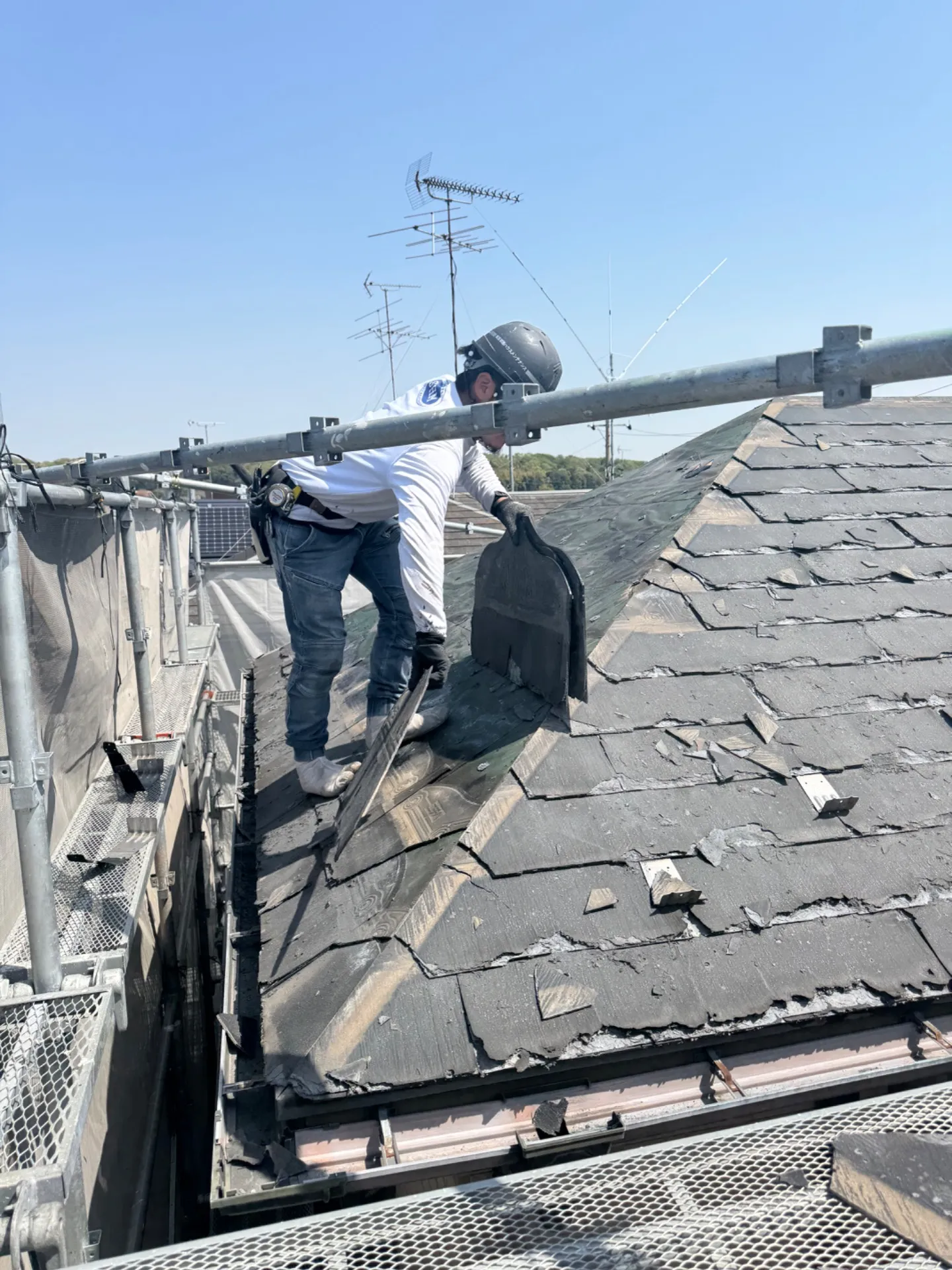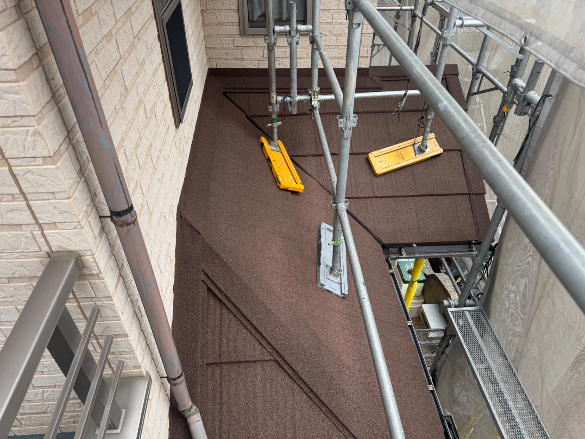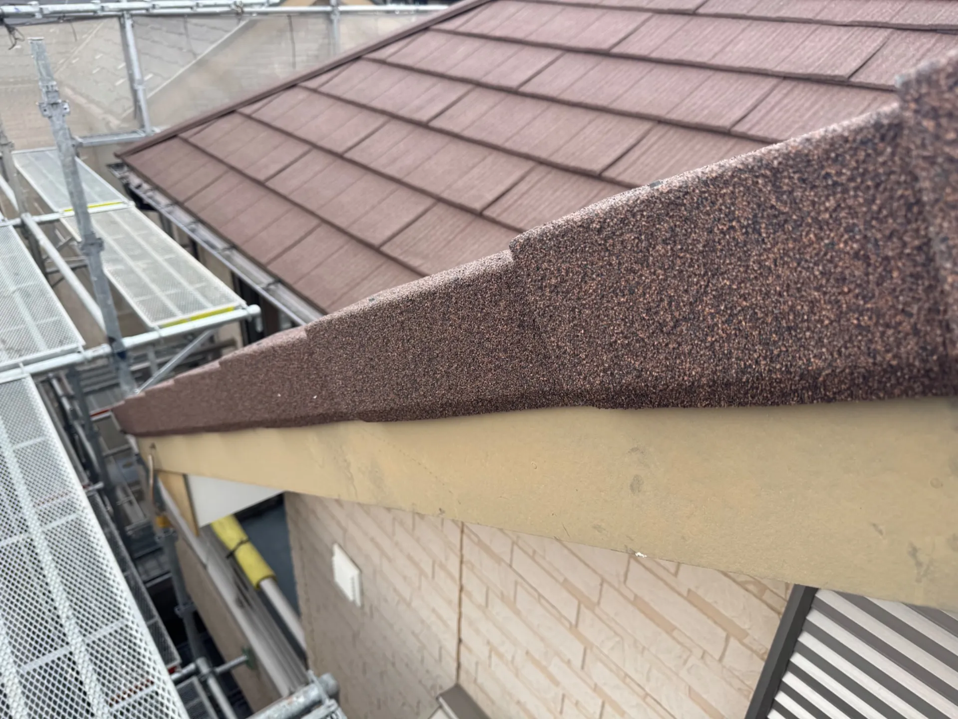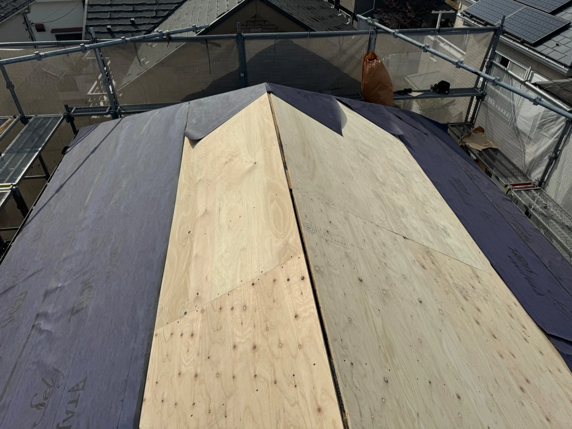 R様邸屋根葺き替え工事 2025/05/02 屋根カバー工事 工事物件住所:相模原市緑区町屋 工事内容詳細:屋根葺き替え工事工事 予算:120万円(税抜) 【使用材料】 屋根:エコグラーニ・ディーズルーフィング 施工後写真 足場架設 既存屋根撤去(ニチハ・パミール) 既存ルーフィング撤去 野地重ね張り 新規ルーフィング施工 屋根役物施工 屋根本体施工 屋根完成写真