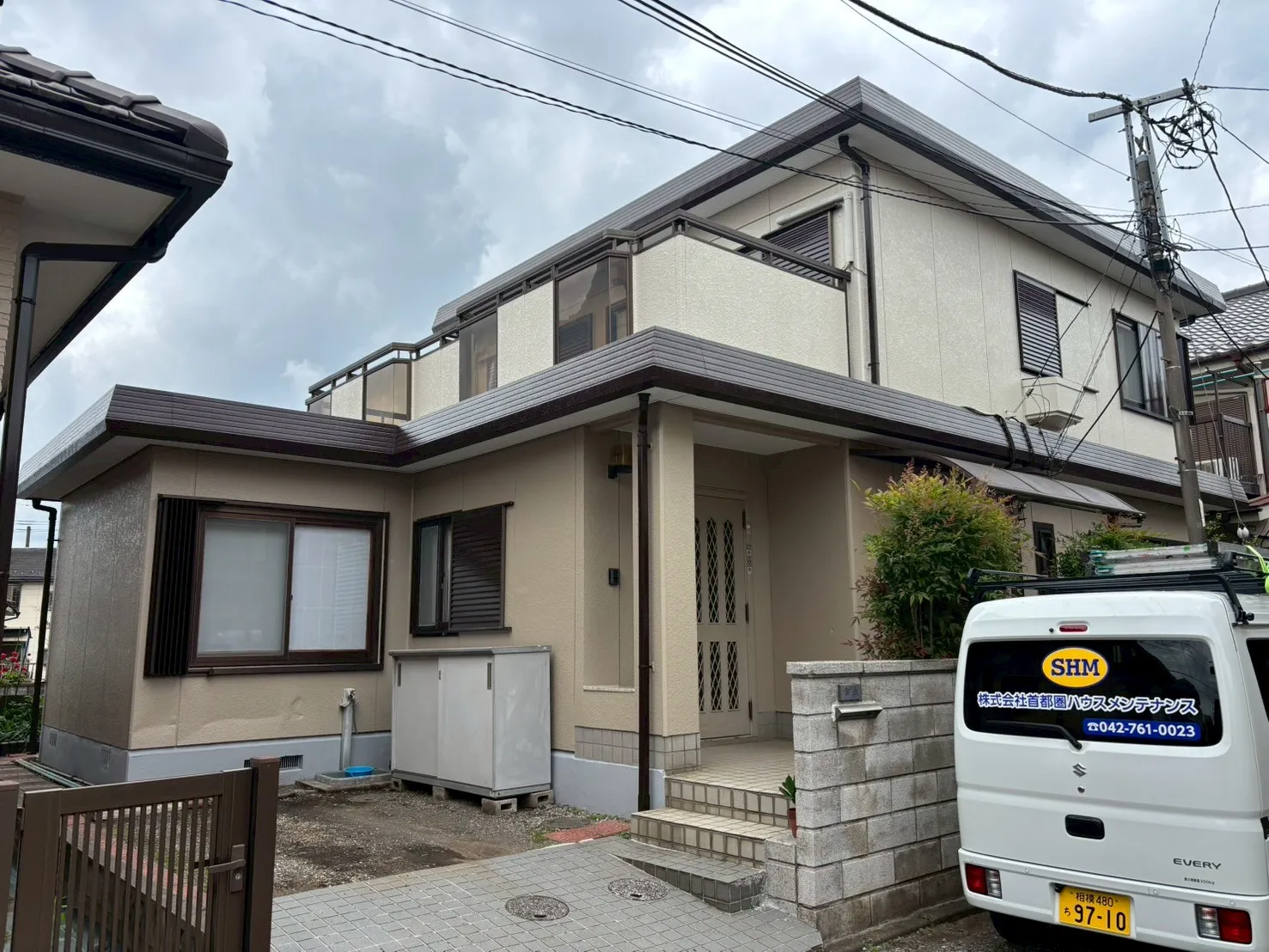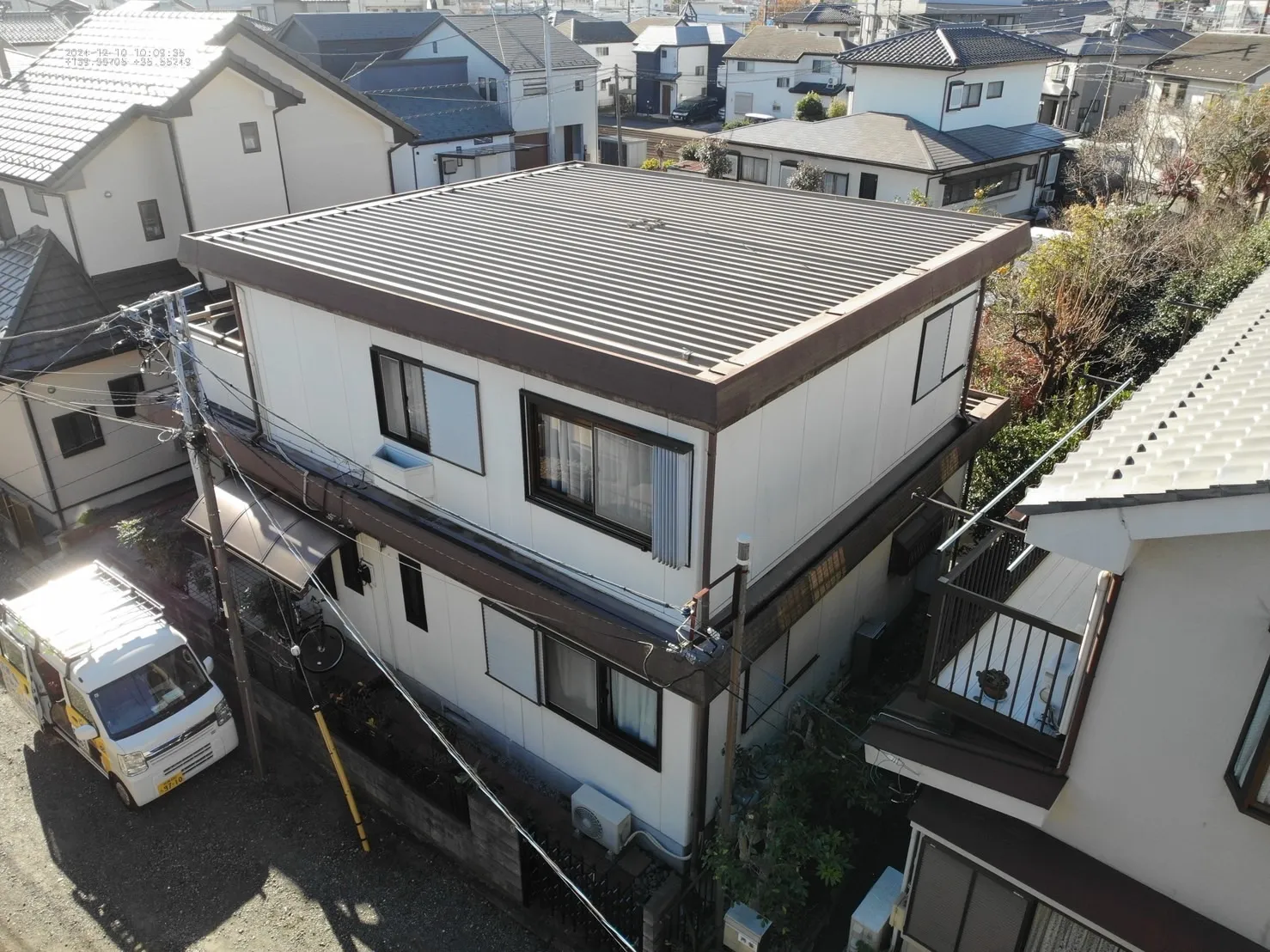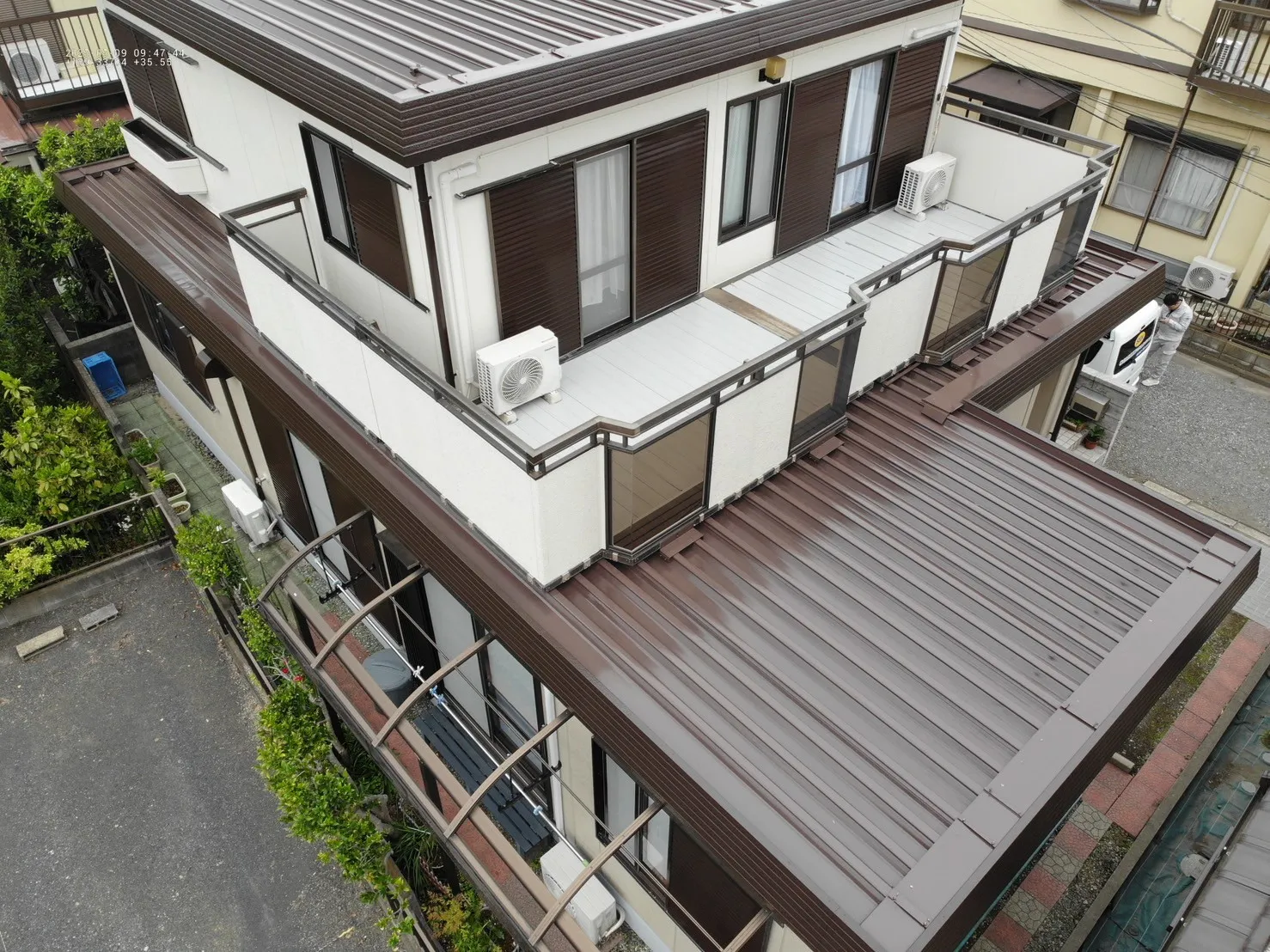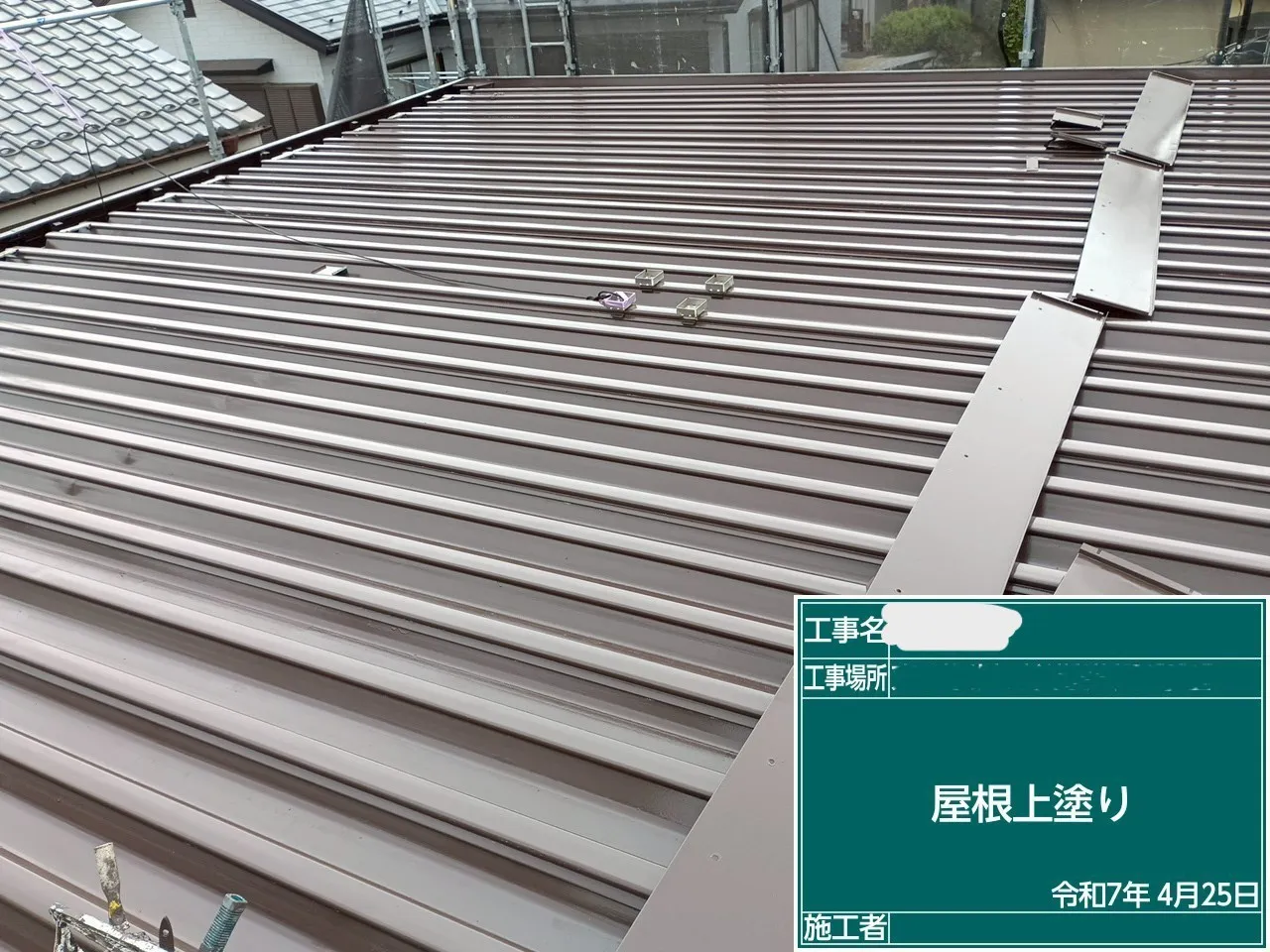 相模原市中央区田名 I様邸 屋根外壁塗装工事 2025/06/03 工事物件住所:相模原市中央区田名 【使用材料】 屋根:ファインパーフェクトベスト(ナポリブラウン) 外壁:パーフェクトトップ(上:NDー108 下:ND-184) 予算:100万円(税抜き) 施工前後比較写真 施工後 施工前 施工前後比較写真 施工後 施工前 高圧洗浄作業 養生 外壁下塗り 外壁中塗り 外壁上塗り 屋根錆止め・中塗り 屋根上塗り 軒天 施工後 施工前 施工後写真 屋根工事 塗装工事
