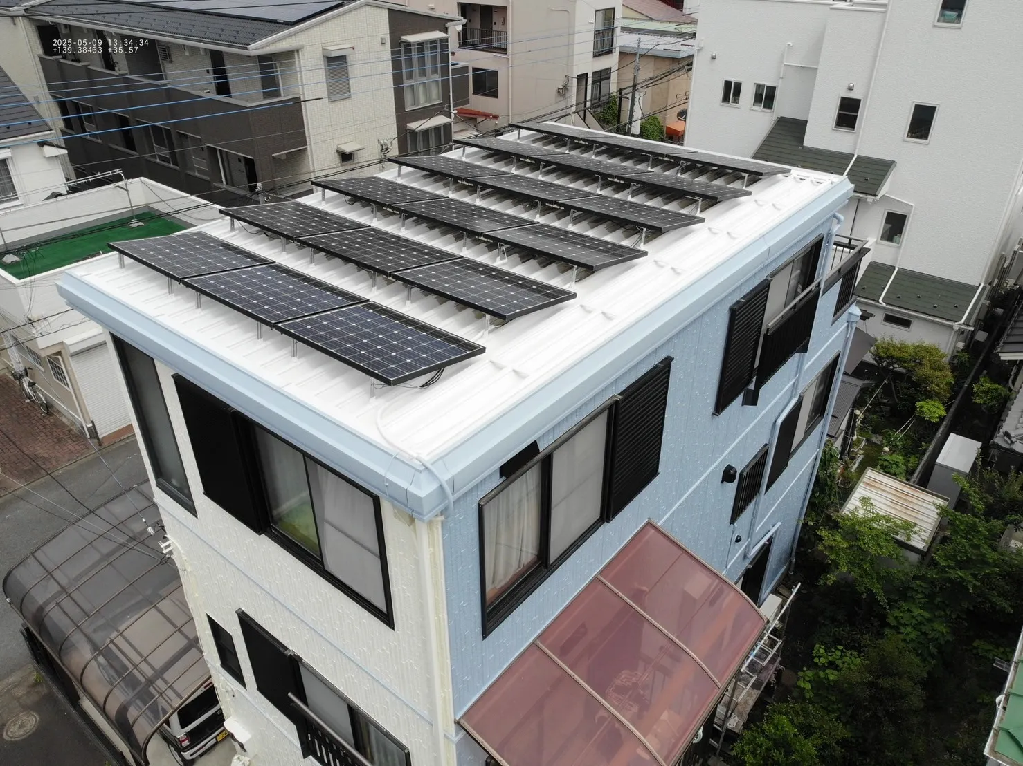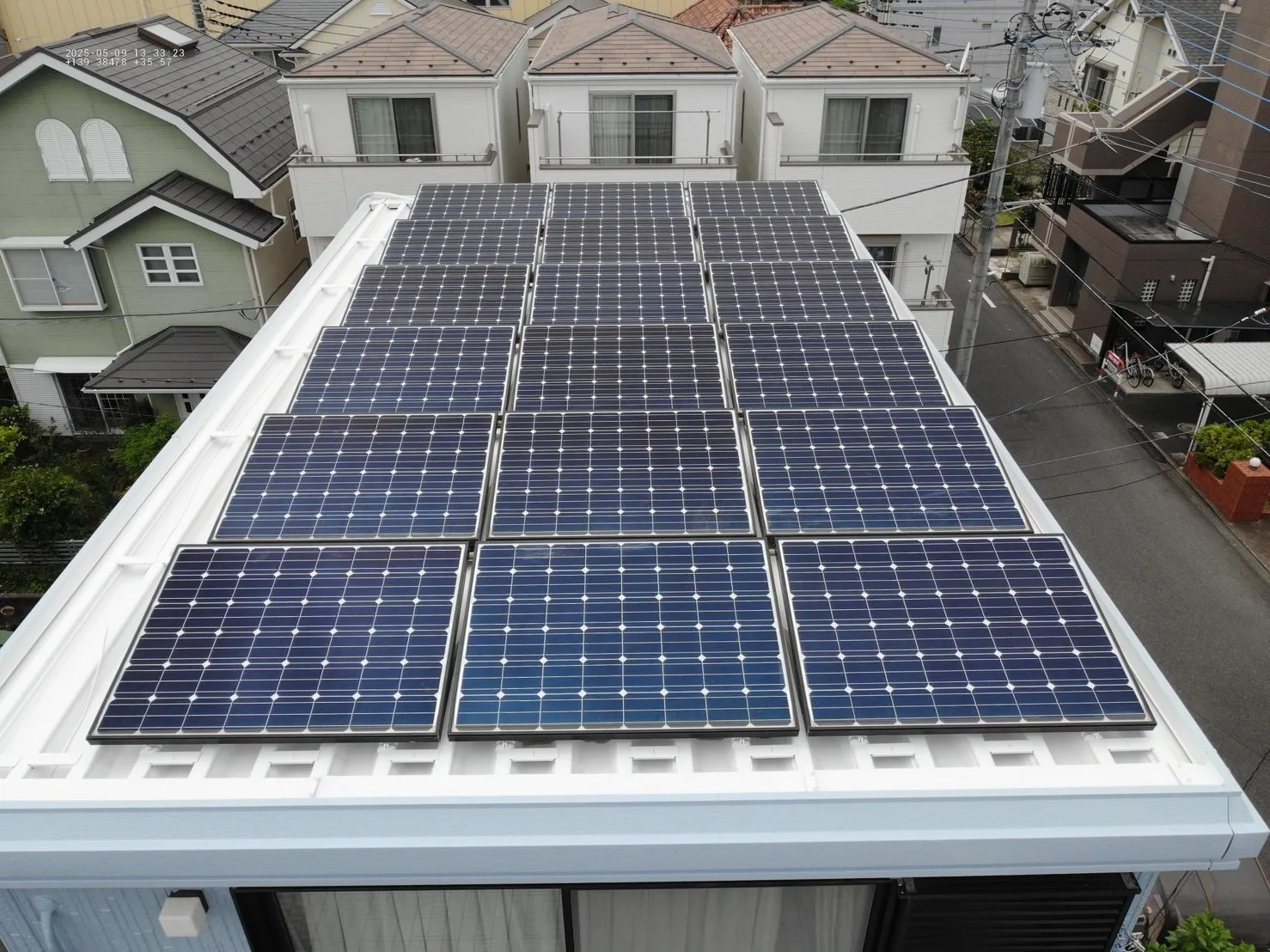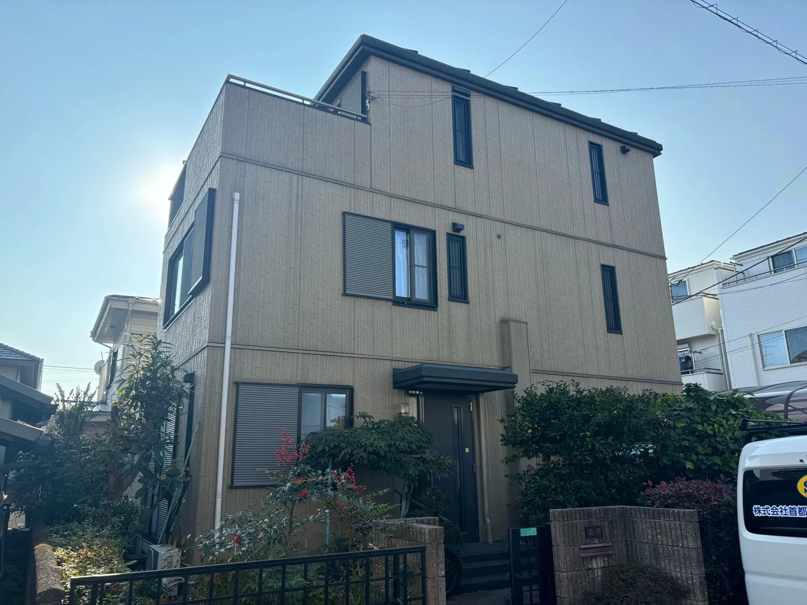 相模原市中央区矢部 H 様邸 屋根外壁塗装工事 2025/06/05 工事物件住所:相模原市中央区矢部 【使用材料】 屋根:超低汚染リファイン500無機IR(シルキーホワイト) 外壁:超低汚染リファイン1000無機IR(N-90×ブルーグレイ) 予算:125万円(税抜き) 施工前後比較写真 施工後 施工前 高圧洗浄施工 養生 屋根下塗り 屋根上塗り 屋根施工後写真 外壁下塗り 外壁中塗り 外壁上塗り 付帯部塗装施工 施工後写真 屋根工事 塗装工事