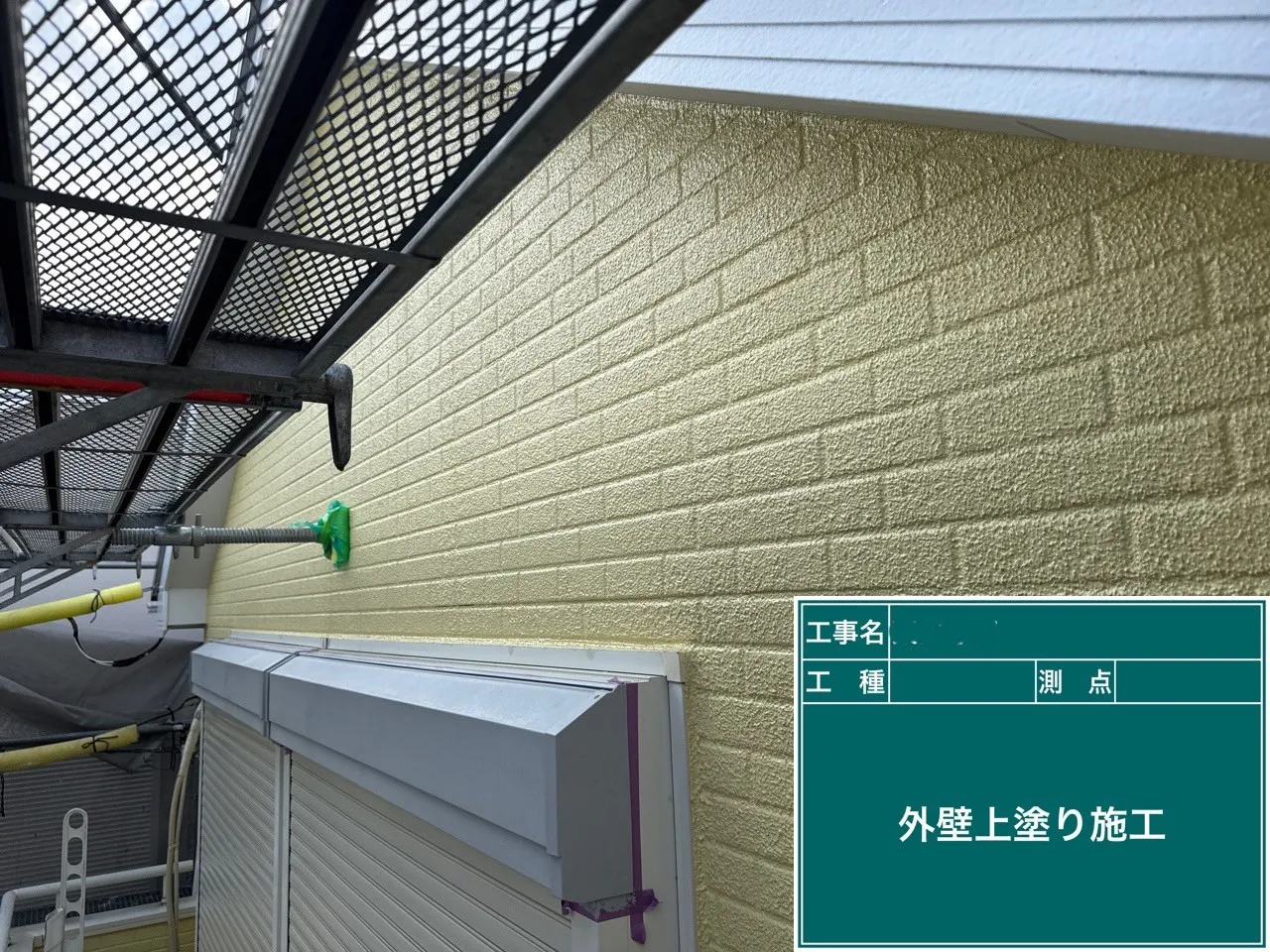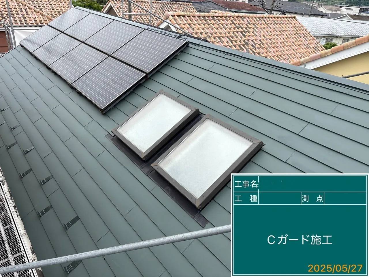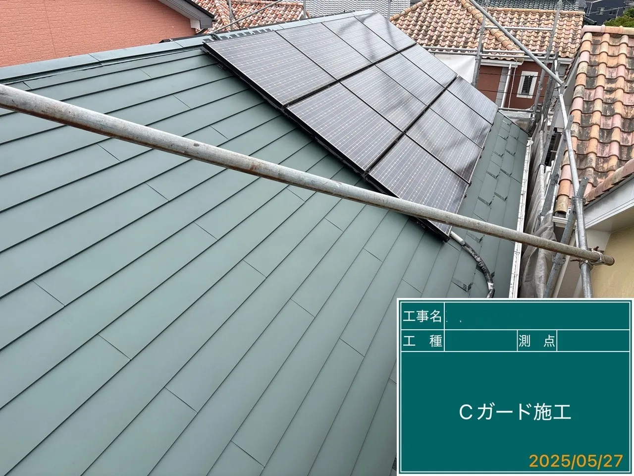 相模原市中央区田名 H様邸 屋根板金外壁塗装工事 2025/06/25 工事物件住所:相模原市中央区田名 工事内容詳細:屋根板金外壁塗装工事 【使用材料】 屋根:シーガード施工(グリーン) 外壁:超低汚染リファイン1000MF(9009:レモン) 予算:139万円(税抜) 全景施工前後比較写真 施工後 施工前 全景施工前後比較写真 施工後 施工前 屋根施工前後比較写真 施工後 施工前 施工前後比較写真 施工後 施工前 高圧洗浄施工 養生施工 外壁下塗り 外壁中塗り 外壁上塗り 屋根シーガード施工 付帯部塗装 完成後写真