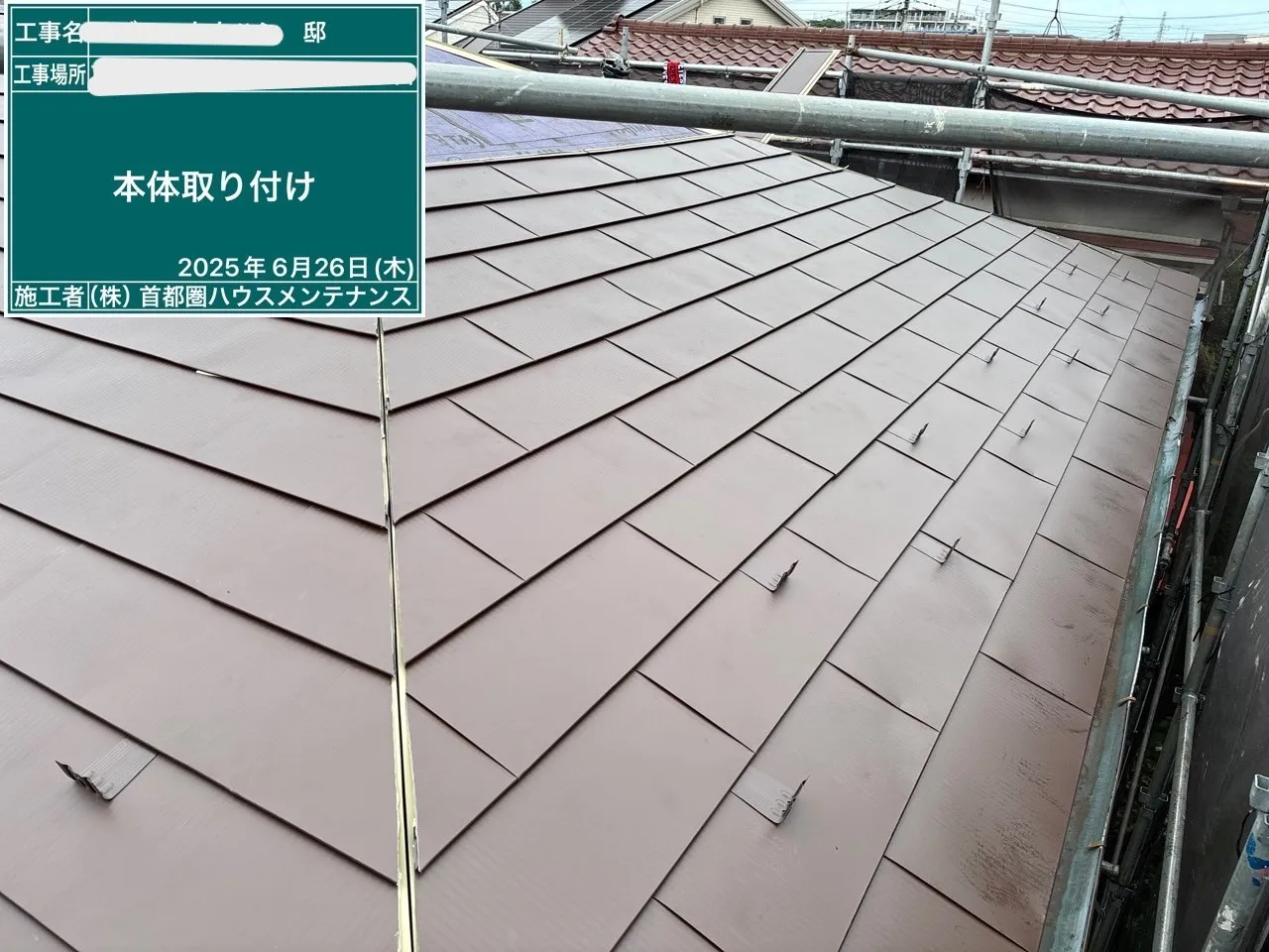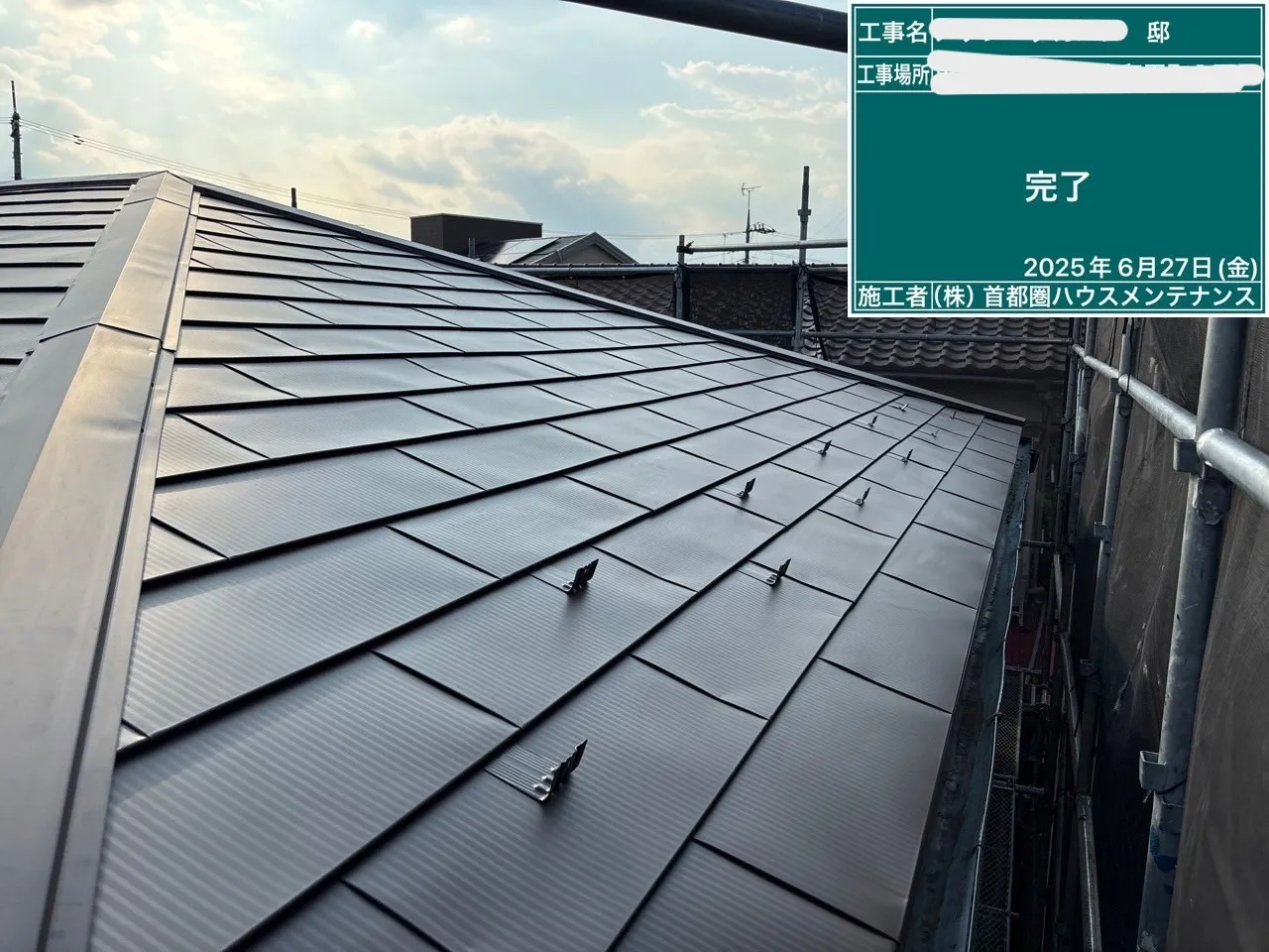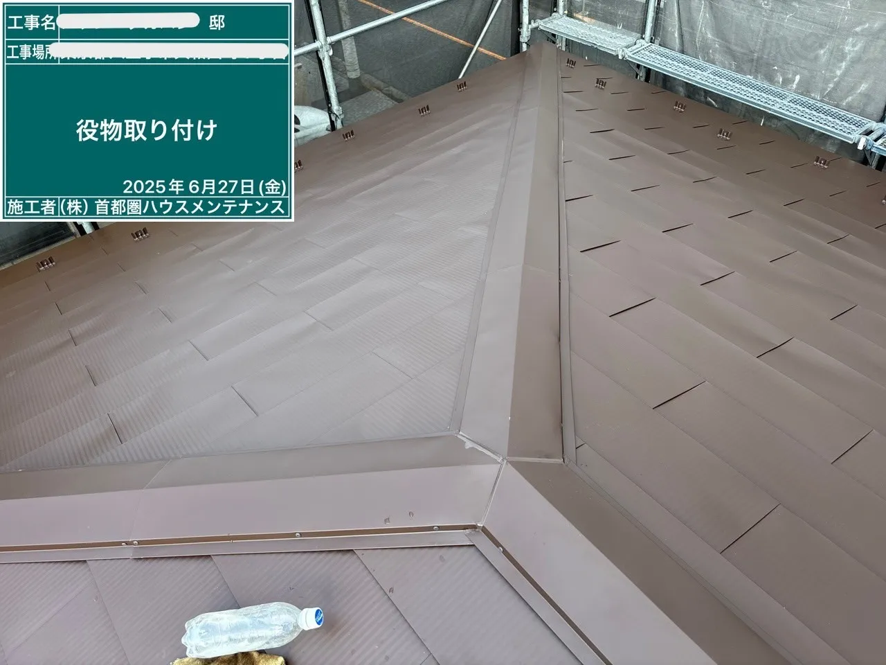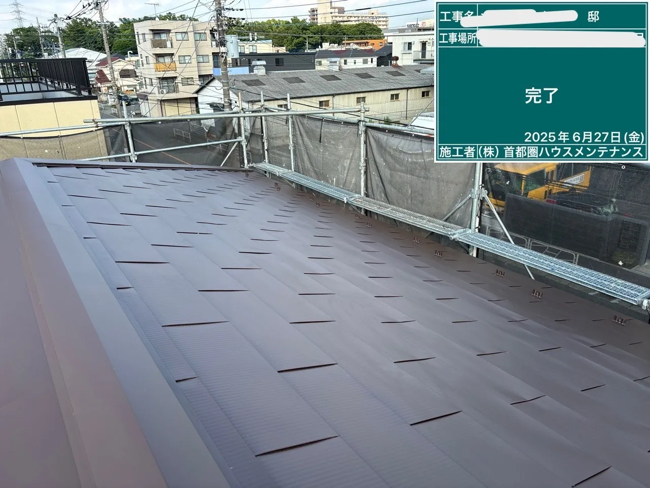 八王子市大和田町アパート 屋根カバー工法及び外壁塗装工事 2025/07/01 工事物件住所:八王子市大和田町 工事内容詳細:屋根カバー工法及び外壁塗装工事 【使用材料】 屋根:ヒランビ極MAX(セピア) 外壁:パーフェクトトップ(ND-111) 予算:163万円(税抜) 施工後 施工前 施工後 施工前 高圧洗浄 養生 外壁下塗り 外壁中塗り 外壁上塗り 屋根下葺き・スターター 屋根本体取り付け 屋根役物取り付け 付帯部塗装 施工後写真