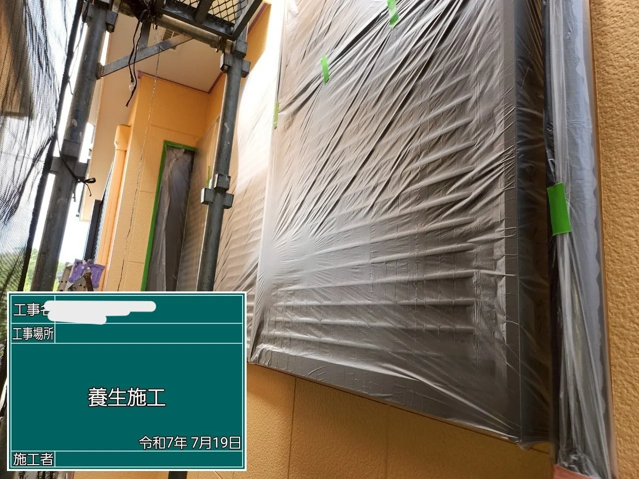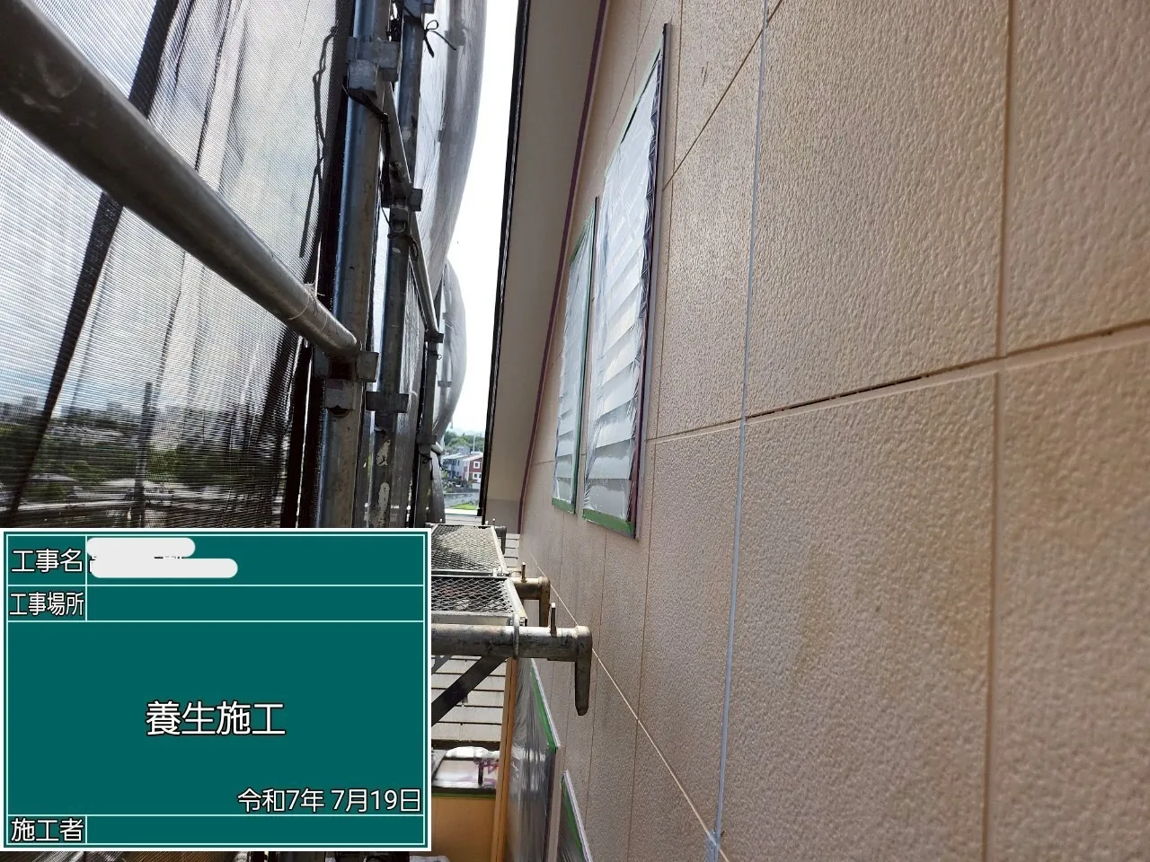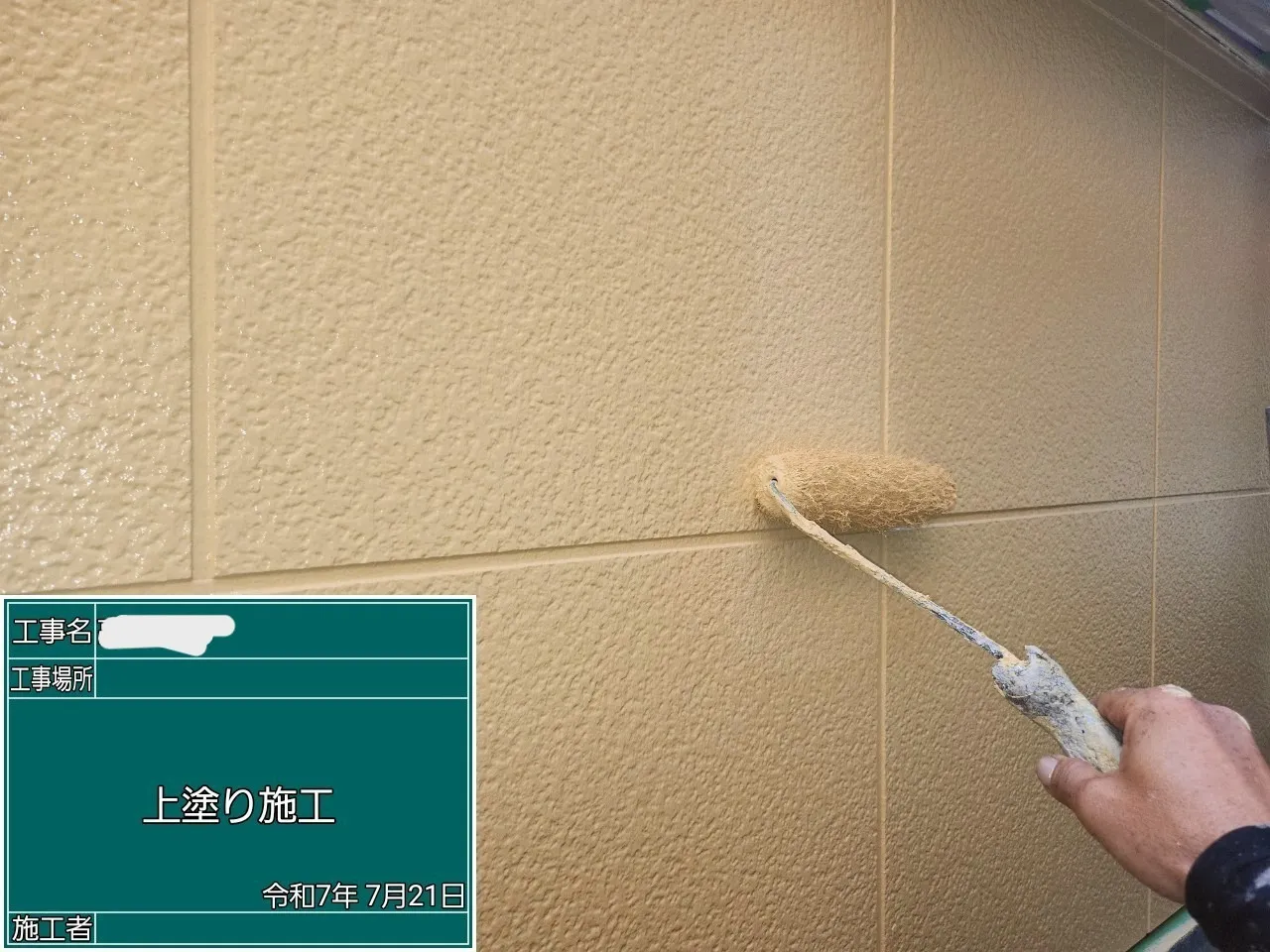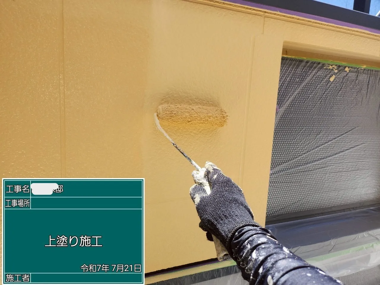 座間市栗原中央 K様邸 1面塗装工事 2025/08/05 工事物件住所:座間市栗原中央 【使用材料】 外壁:パーフェクトトップ(ND-281) 予算:41万円(税抜き) 高圧洗浄作業写真 養生写真 養生写真 外壁一面下塗り写真 外壁一面中塗り写真 外壁一面上塗り写真 外壁一面上塗り写真 完成写真 完成写真