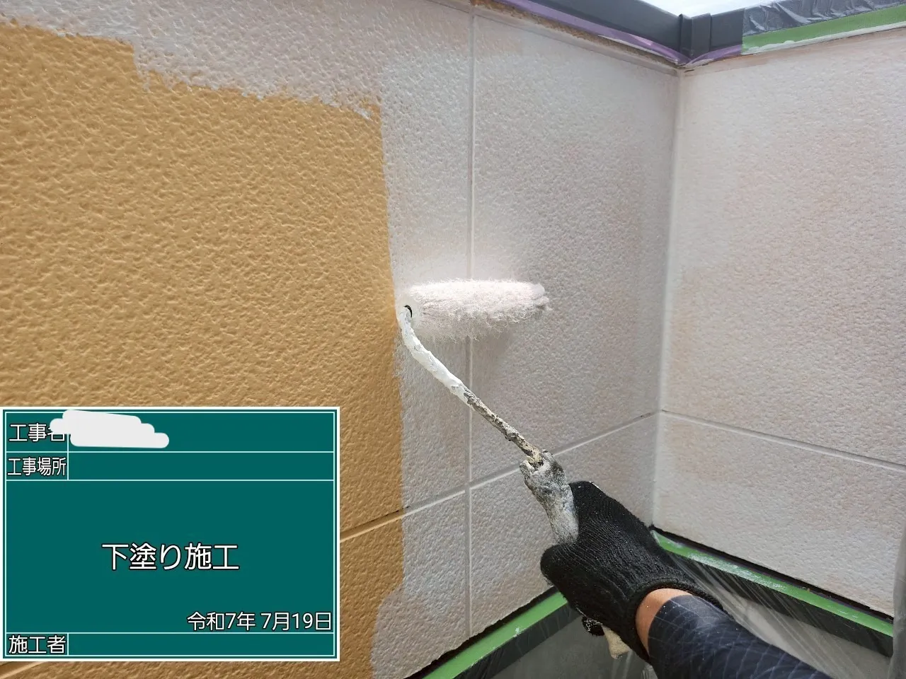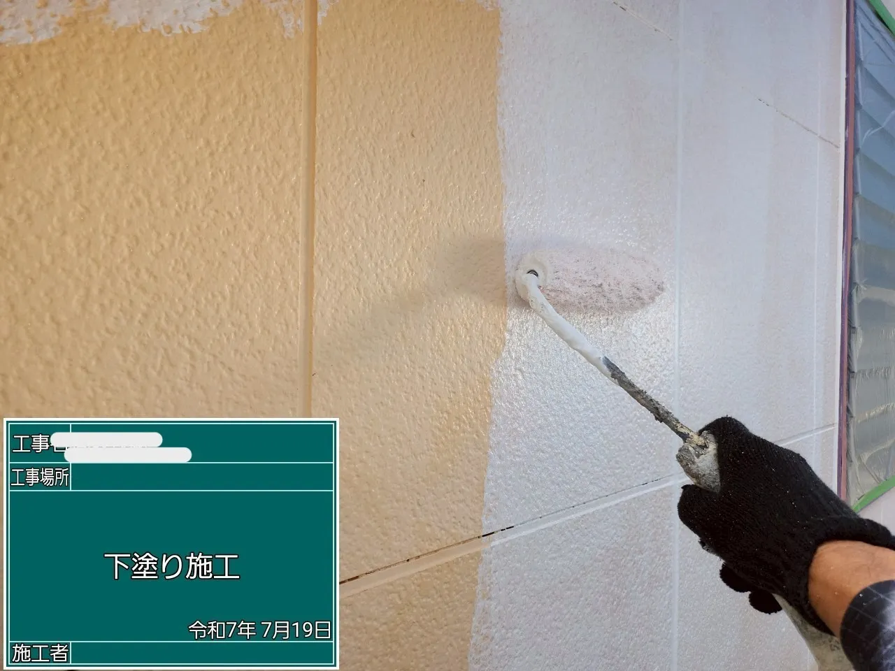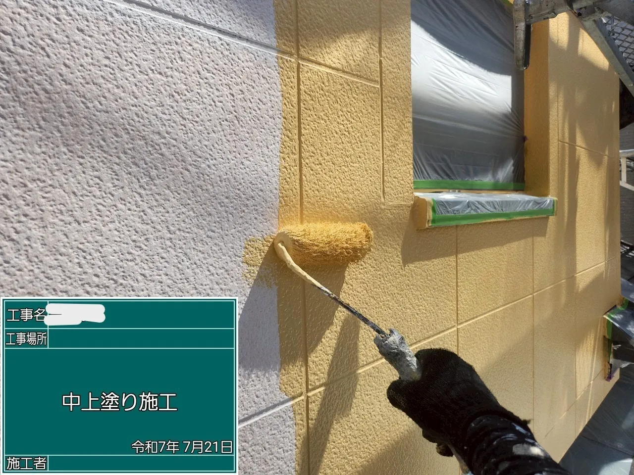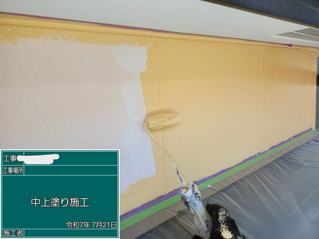 座間市栗原中央 K様邸 1面塗装工事 2025/08/05 工事物件住所:座間市栗原中央 【使用材料】 外壁:パーフェクトトップ(ND-281) 予算:41万円(税抜き) 高圧洗浄作業写真 養生写真 養生写真 外壁一面下塗り写真 外壁一面中塗り写真 外壁一面上塗り写真 外壁一面上塗り写真 完成写真 完成写真