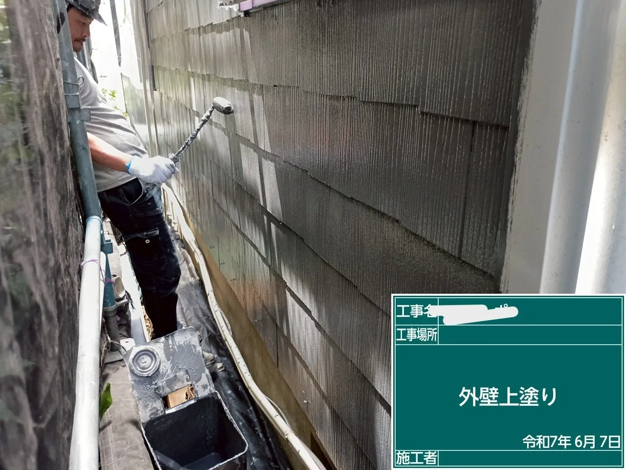 大和市鶴間 アパート 屋根外壁塗装 2025/08/08 工事物件住所:大和市鶴間 【使用材料】 屋根:ファインパーフェクトベスト 外壁:パーフェクトトップ(ND-013) 価格:273万円(税抜) 外観施工前後比較写真 施工後 施工前 高圧洗浄作業写真 高圧洗浄作業写真 養生写真 養生写真 屋根下塗り写真 屋根中塗り写真 屋根上塗り写真 外壁下塗り写真 外壁中塗り写真 外壁上塗り写真 付帯部塗装写真 付帯部塗装写真 付帯部塗装写真 付帯部塗装写真 付帯部塗装写真 完成写真