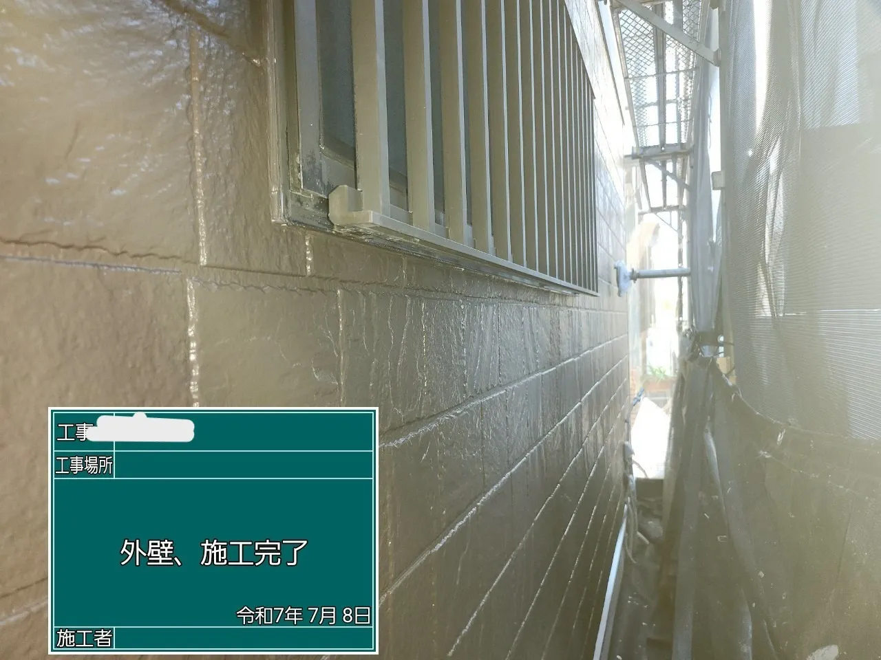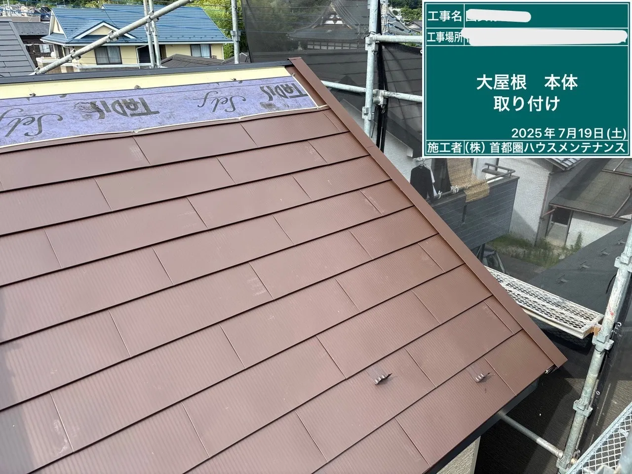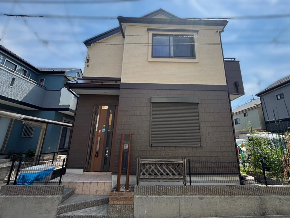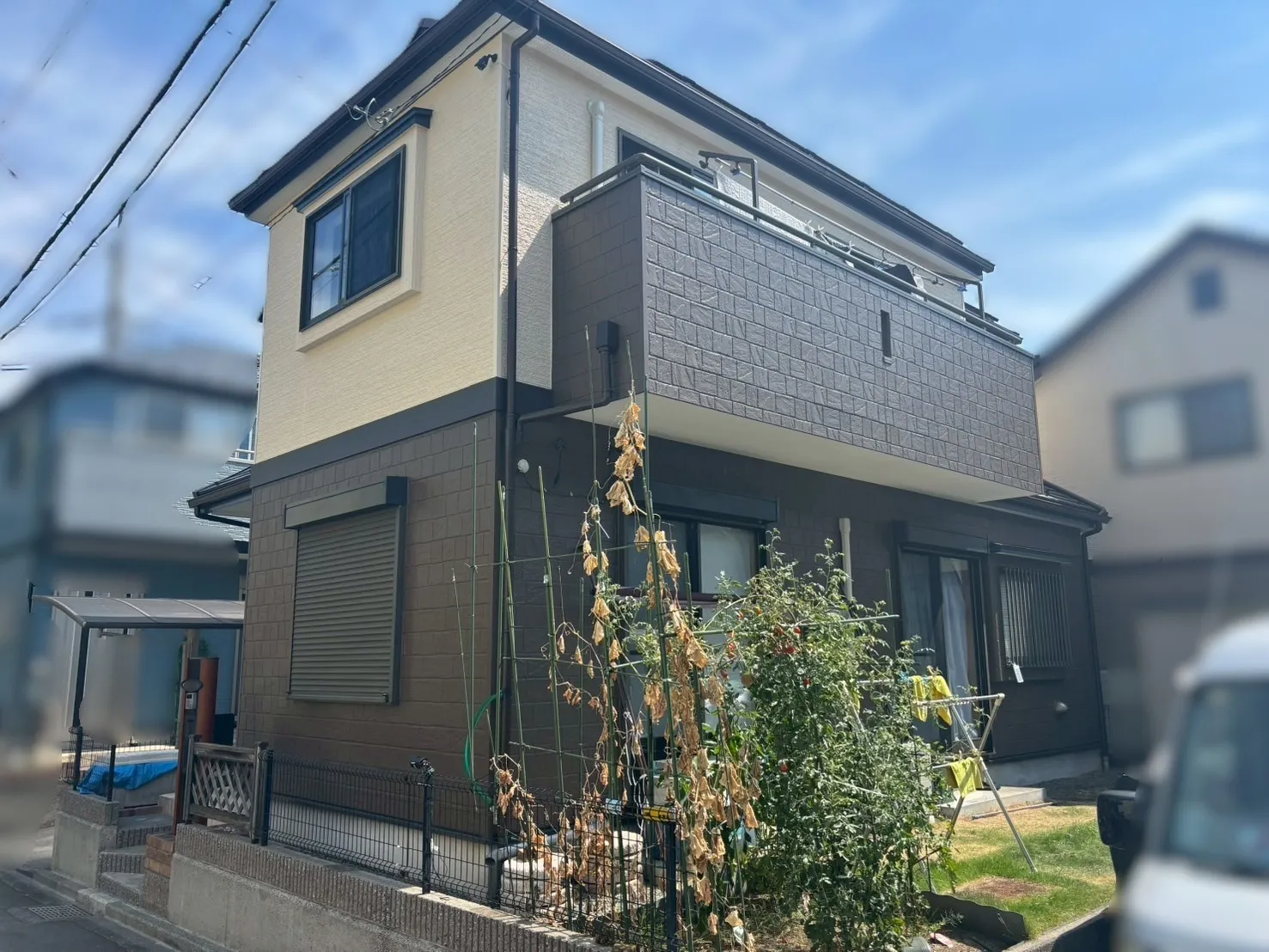 相模原市緑区相原 K様邸 屋根カバー工事・外壁付帯部塗装工事・その他 2025/08/12 工事物件住所:相模原市緑区相原 【使用材料】 屋根:ヒランビー(セピア) 外壁:フッ素REVO1000-IR(遮熱 アイアンバーグ・ペールビスケット) 予算:210万円(税抜) 外観施工前後比較写真 施工後 施工前 高圧洗浄作業 養生作業 屋根カバー施工 コーキング施工 外壁下塗り作業 外壁中塗り作業 外壁上塗り作業 付帯部塗装 完成写真 屋根工事 塗装工事