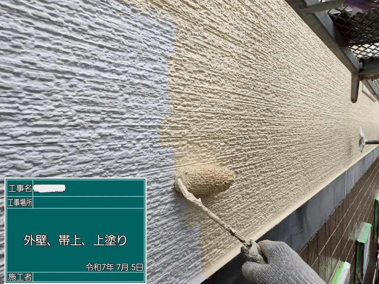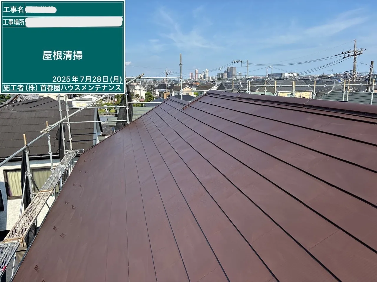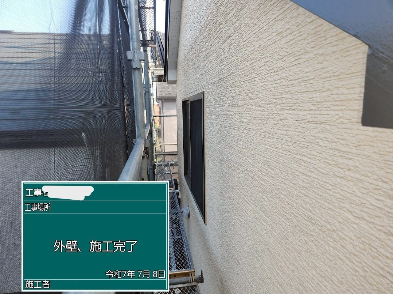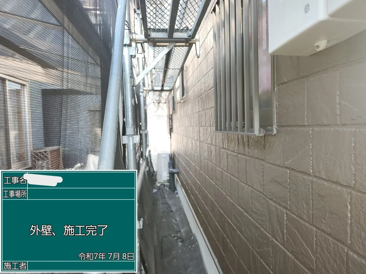 相模原市緑区相原 K様邸 屋根カバー工事・外壁付帯部塗装工事・その他 2025/08/12 工事物件住所:相模原市緑区相原 【使用材料】 屋根:ヒランビー(セピア) 外壁:フッ素REVO1000-IR(遮熱 アイアンバーグ・ペールビスケット) 予算:210万円(税抜) 外観施工前後比較写真 施工後 施工前 高圧洗浄作業 養生作業 屋根カバー施工 コーキング施工 外壁下塗り作業 外壁中塗り作業 外壁上塗り作業 付帯部塗装 完成写真 屋根工事 塗装工事