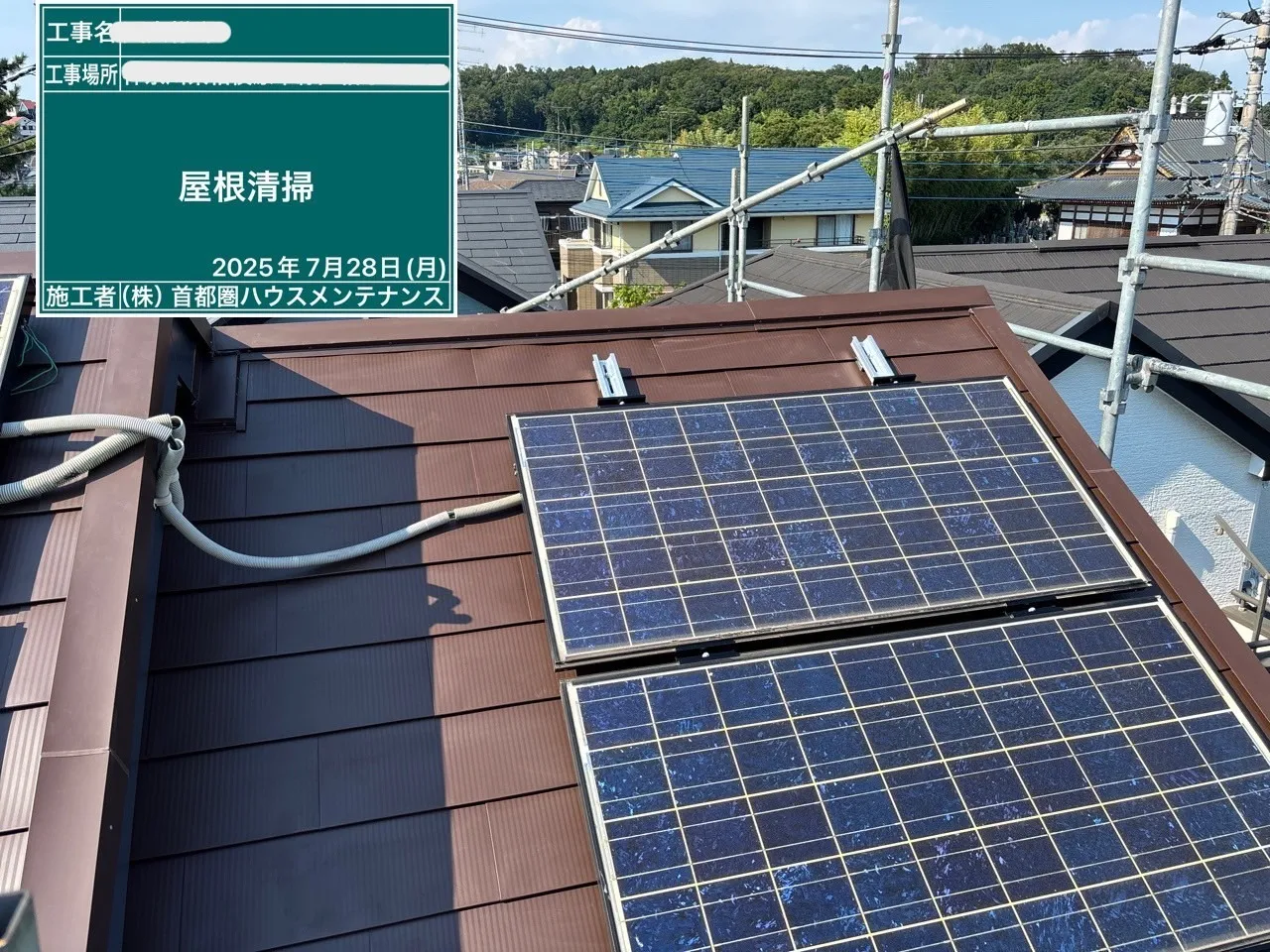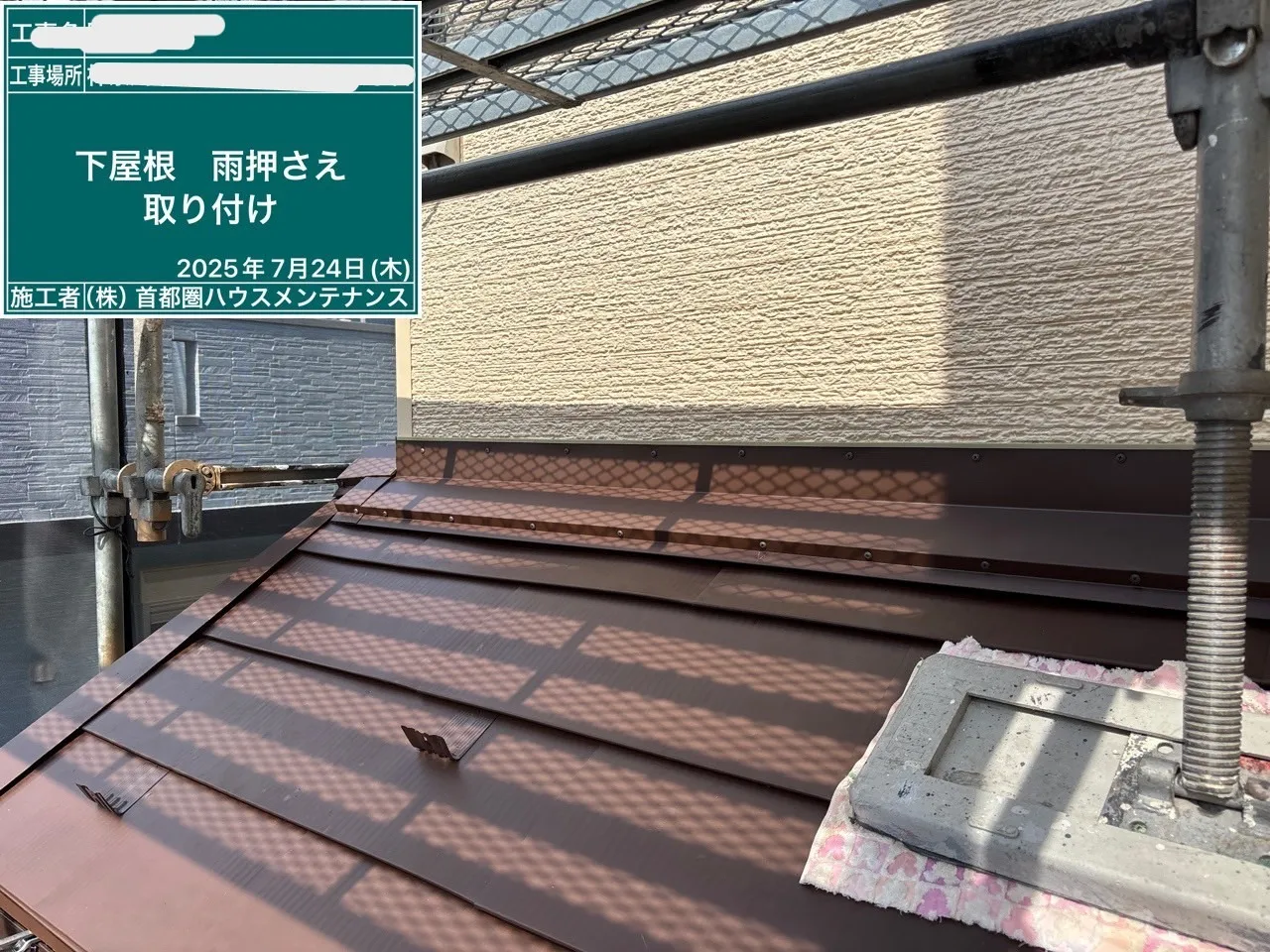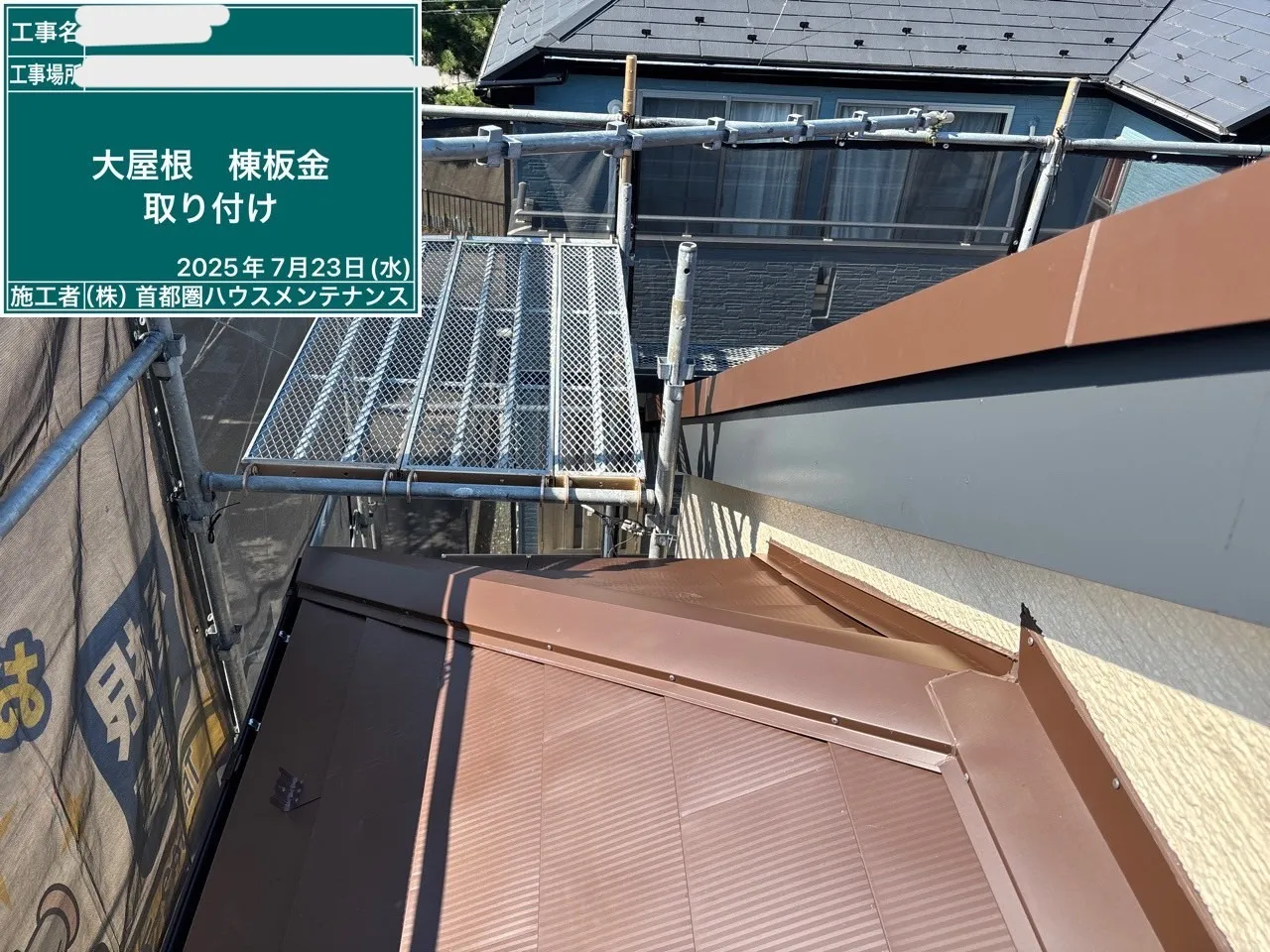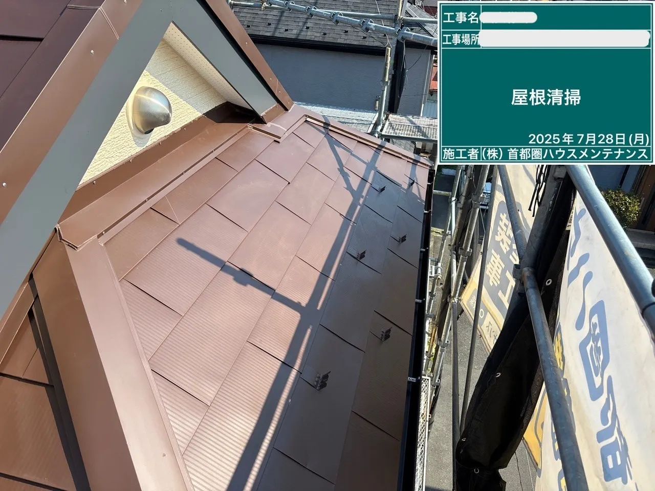 相模原市緑区相原 K様邸 屋根カバー工事・外壁付帯部塗装工事・その他 2025/08/12 工事物件住所:相模原市緑区相原 【使用材料】 屋根:ヒランビー(セピア) 外壁:フッ素REVO1000-IR(遮熱 アイアンバーグ・ペールビスケット) 予算:210万円(税抜) 外観施工前後比較写真 施工後 施工前 高圧洗浄作業 養生作業 屋根カバー施工 コーキング施工 外壁下塗り作業 外壁中塗り作業 外壁上塗り作業 付帯部塗装 完成写真 屋根工事 塗装工事