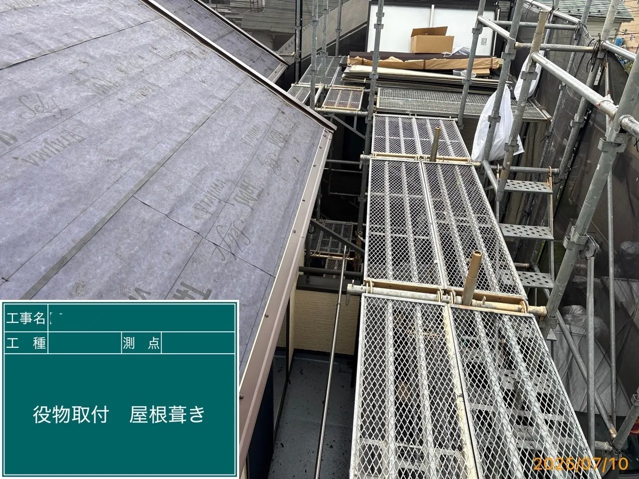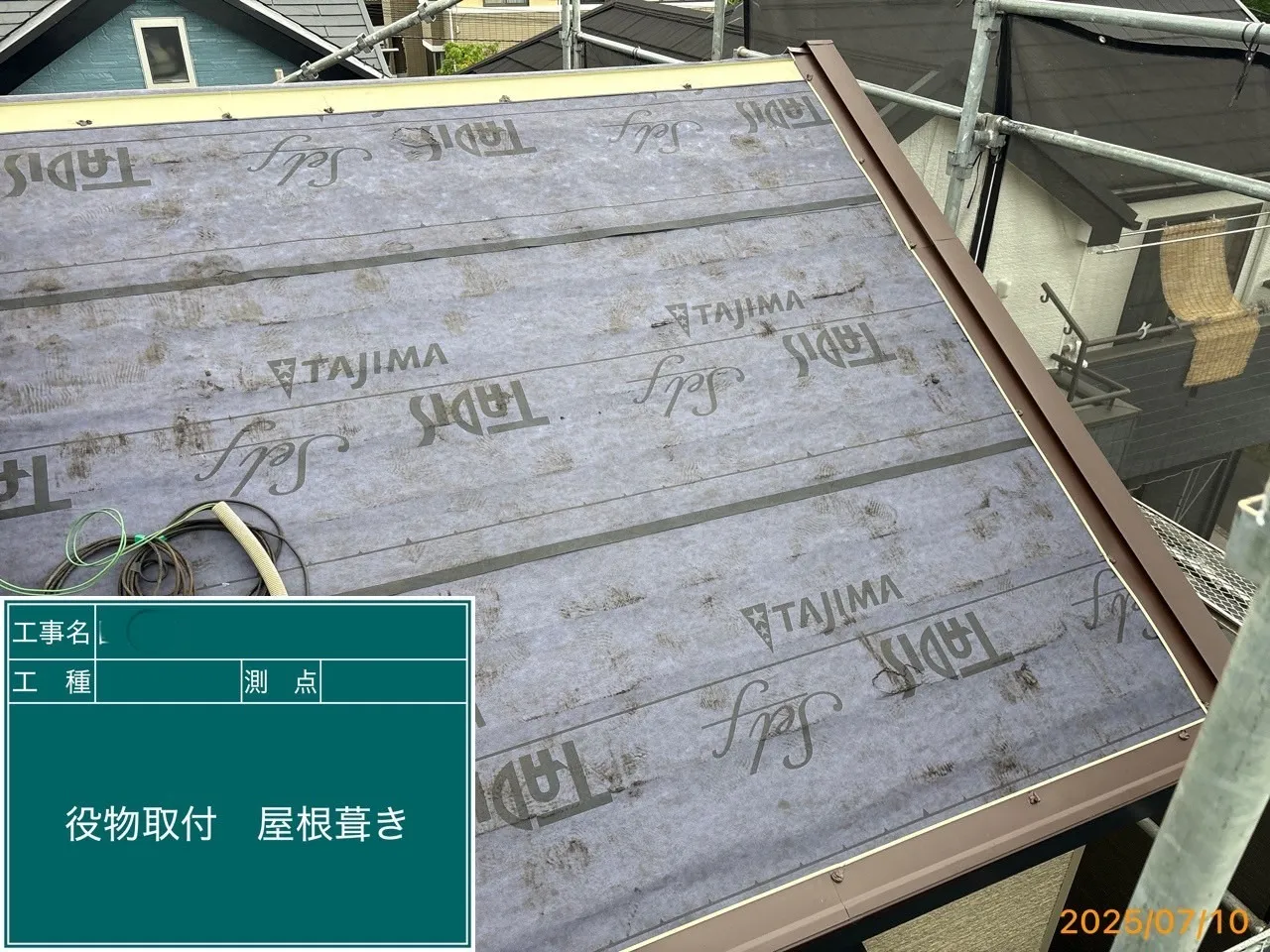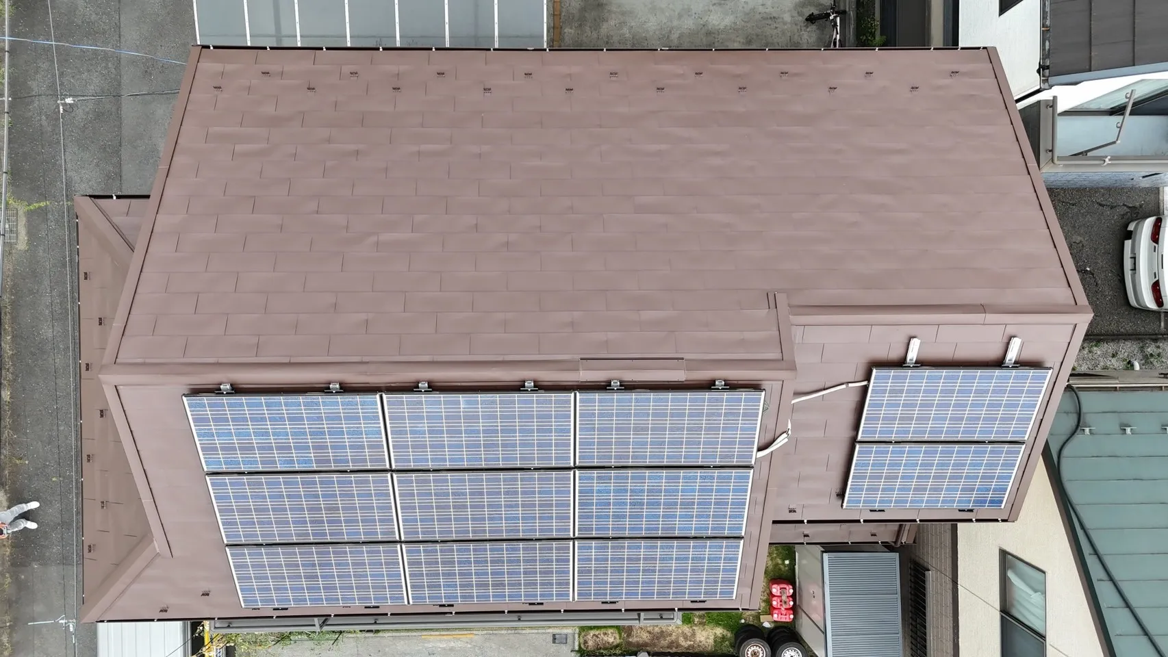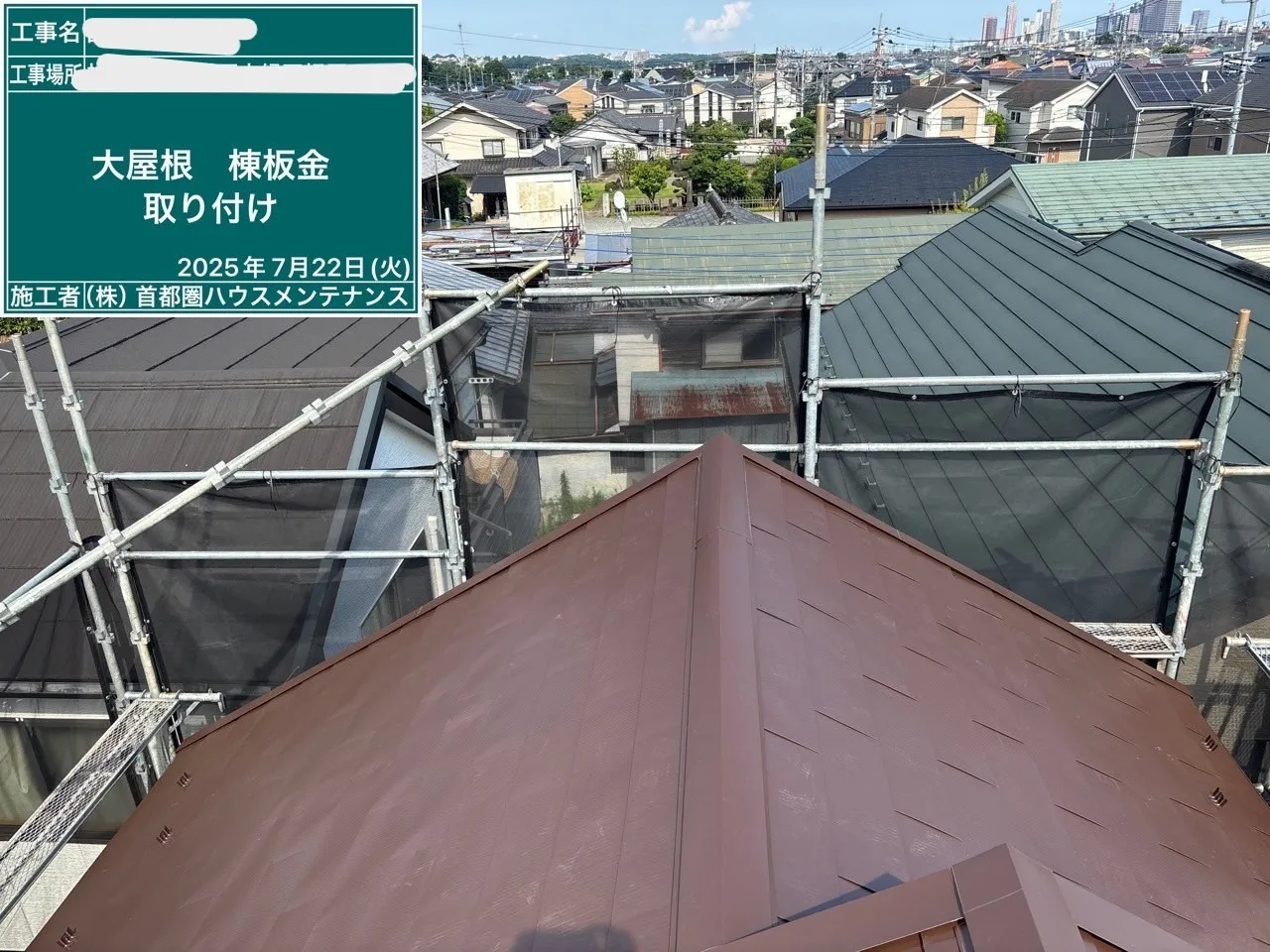 相模原市緑区相原 K様邸 屋根カバー工事・外壁付帯部塗装工事・その他 2025/08/12 工事物件住所:相模原市緑区相原 【使用材料】 屋根:ヒランビー(セピア) 外壁:フッ素REVO1000-IR(遮熱 アイアンバーグ・ペールビスケット) 予算:210万円(税抜) 外観施工前後比較写真 施工後 施工前 高圧洗浄作業 養生作業 屋根カバー施工 コーキング施工 外壁下塗り作業 外壁中塗り作業 外壁上塗り作業 付帯部塗装 完成写真 屋根工事 塗装工事