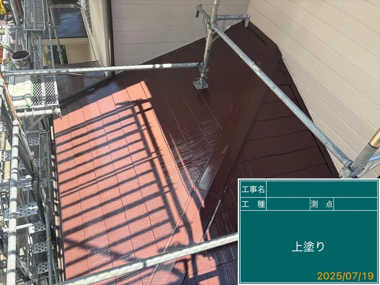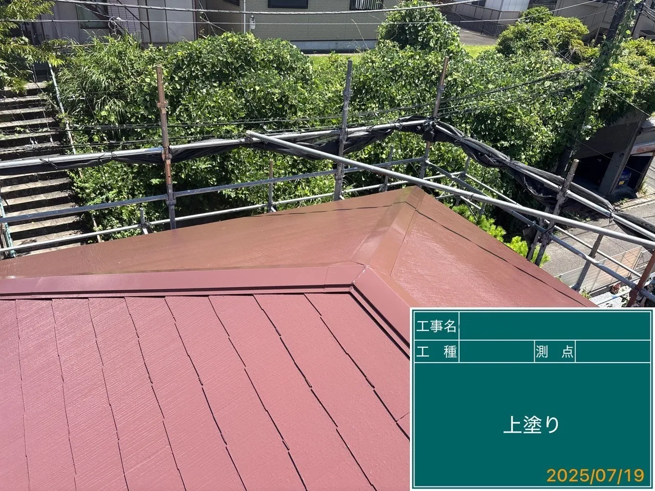 横須賀市衣笠栄町 M様邸 屋根塗装工事 2025/08/18 工事物件住所:横須賀市衣笠栄町 【使用材料】 屋根:スーパー遮熱サーモSi(マホガニー) 予算:72万円(税抜) 屋根施工前後写真 施工後 施工前 高圧洗浄施工 屋根下塗り施工 屋根中塗り施工 屋根上塗り施工 屋根工事