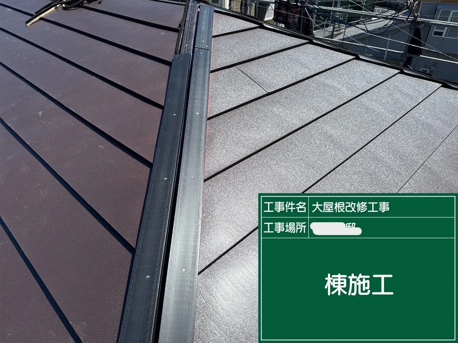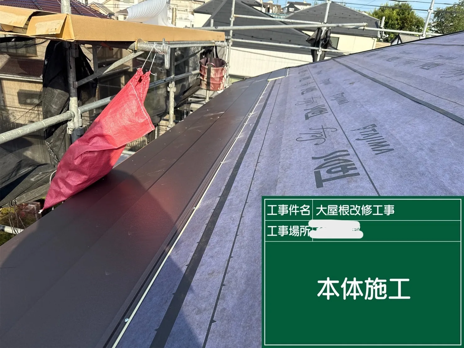 横浜市神奈川区 I様邸 屋根カバー工事 2025/08/20 工事物件住所:横浜市神奈川区 【使用材料】 屋根:横暖ルーフas(CブラウンS) 予算:200万円(税抜) 外観施工前後比較写真 施工後 施工前 解体作業写真 防水シート施工写真 本体取付作業写真 役物取付作業写真 棟取付作業写真 シール打設作業写真